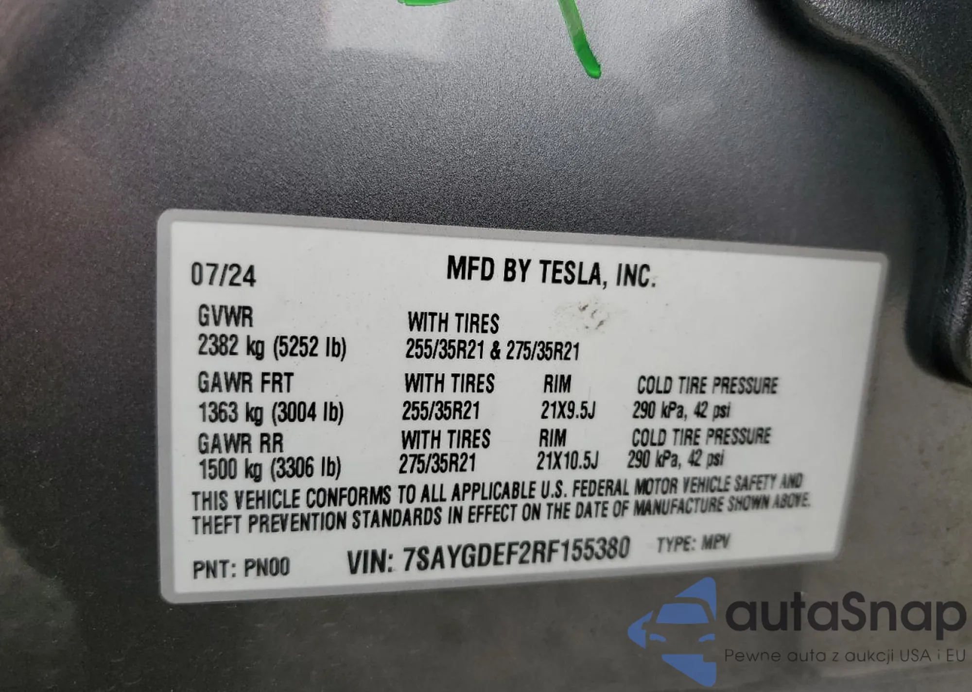 • VIN 7SAYGDEF2RF155380
