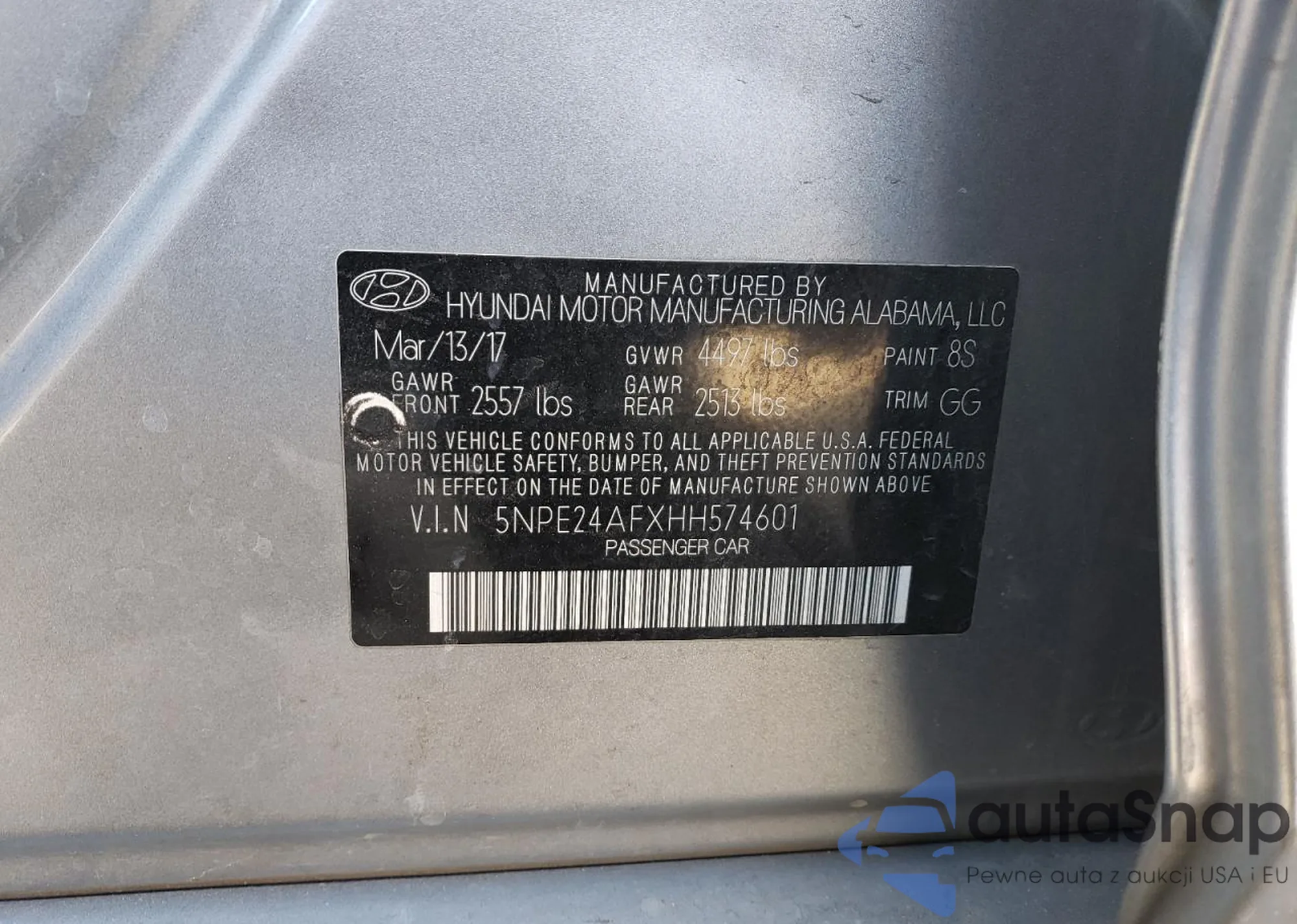 LOT: 44807865 VIN: 5NPE24AFXHH574601