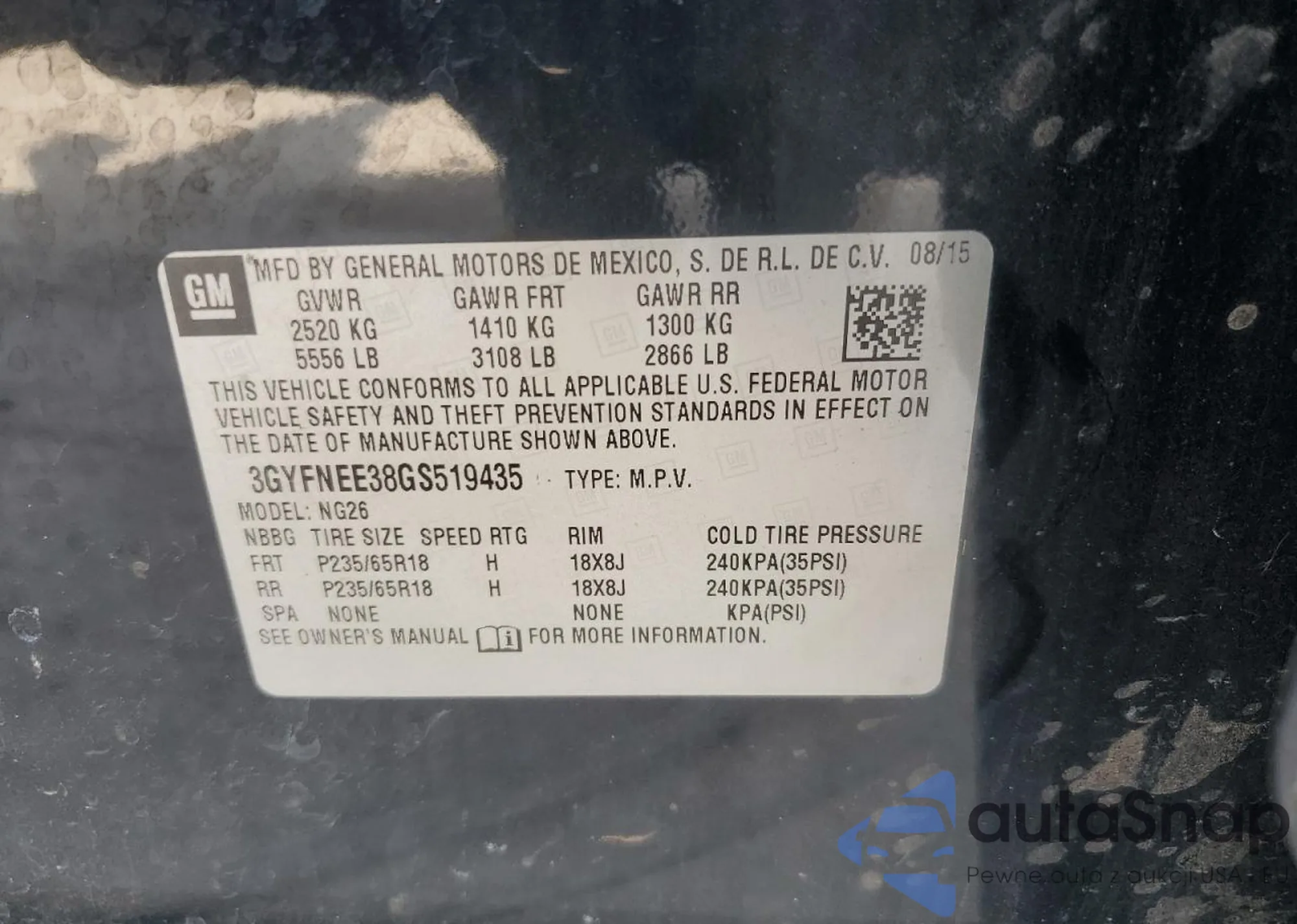 • VIN 3GYFNEE38GS519435