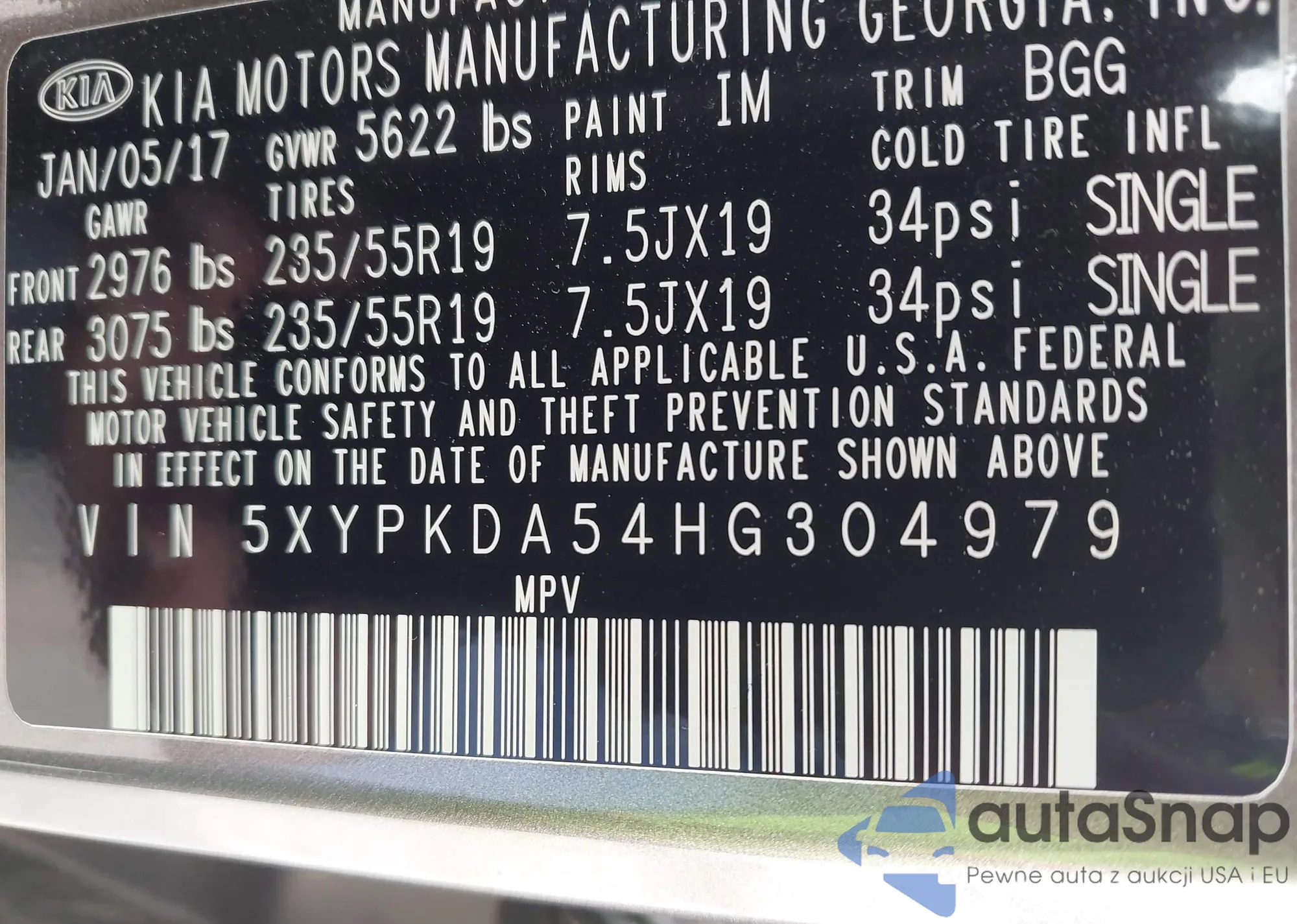 • VIN 5XYPKDA54HG304979