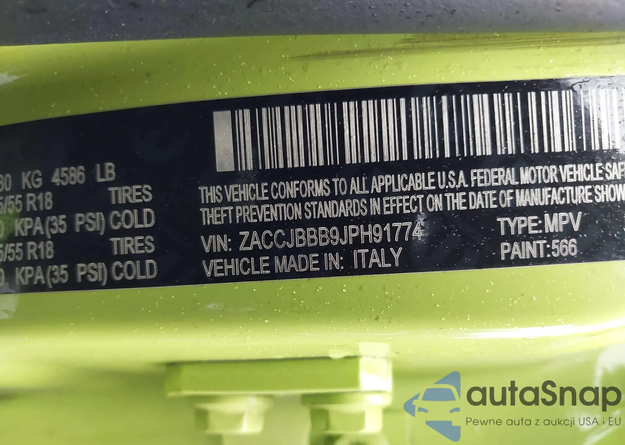• VIN ZACCJBBB9JPH91774