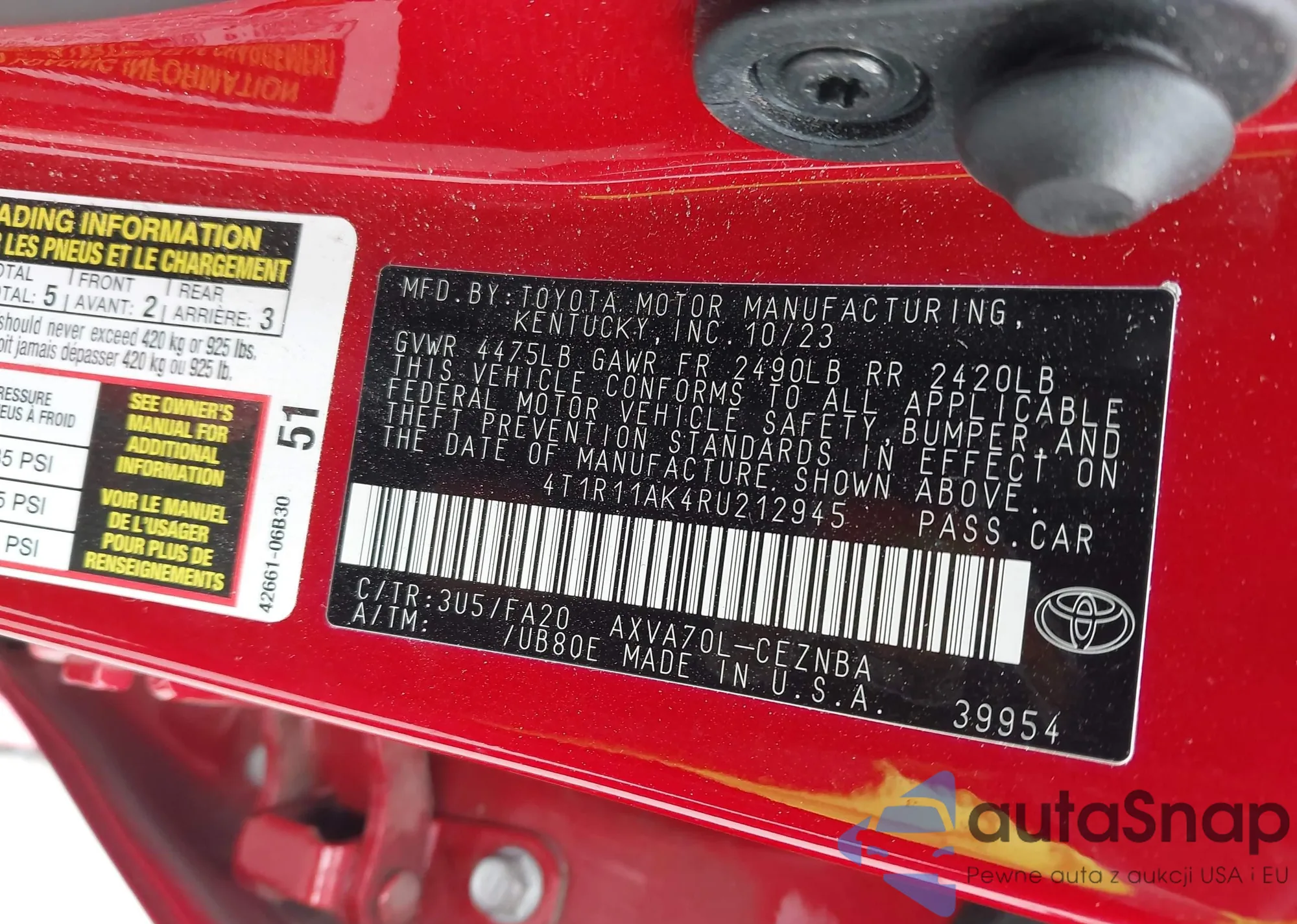 • VIN 4T1R11AK4RU212945