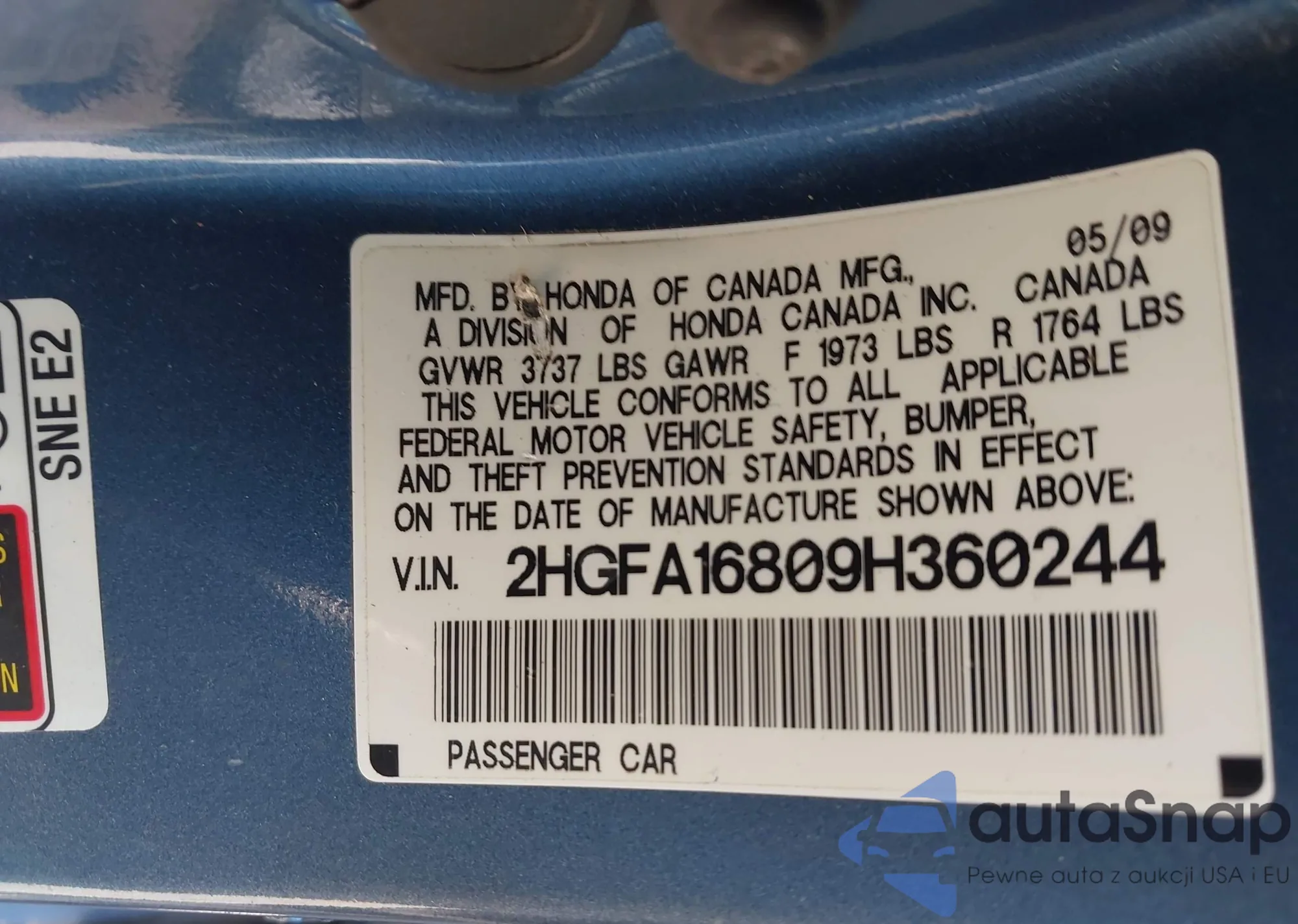 • VIN 2HGFA16809H360244