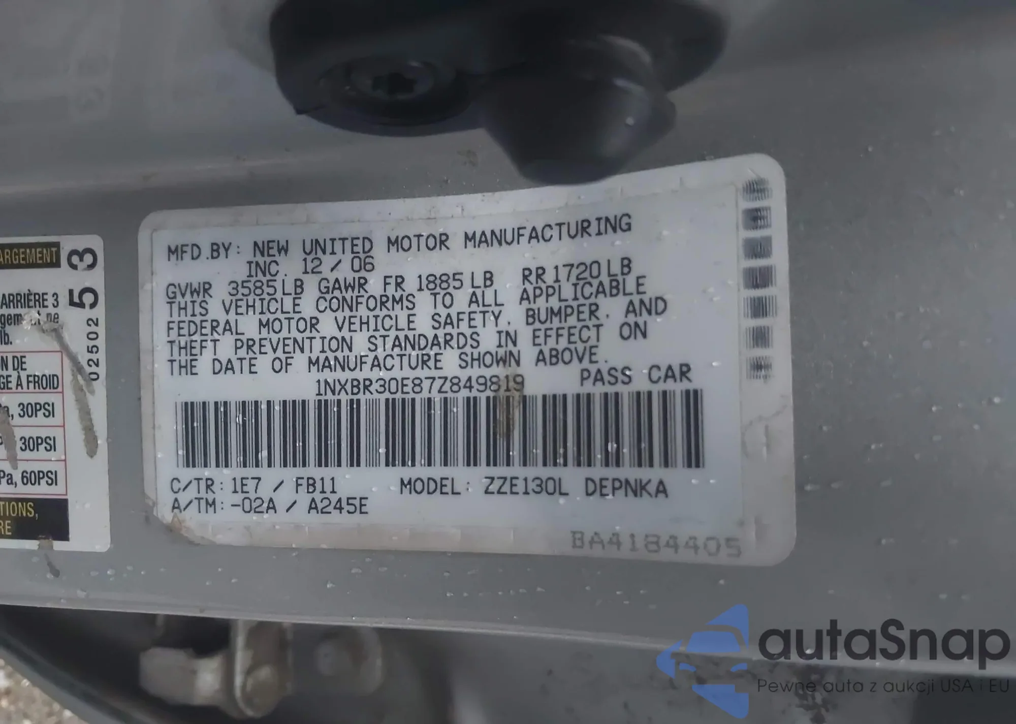 • VIN 1NXBR30E87Z849819