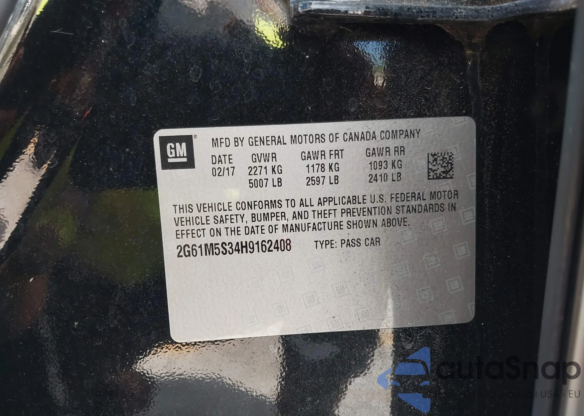 • VIN 2G61M5S34H9162408
