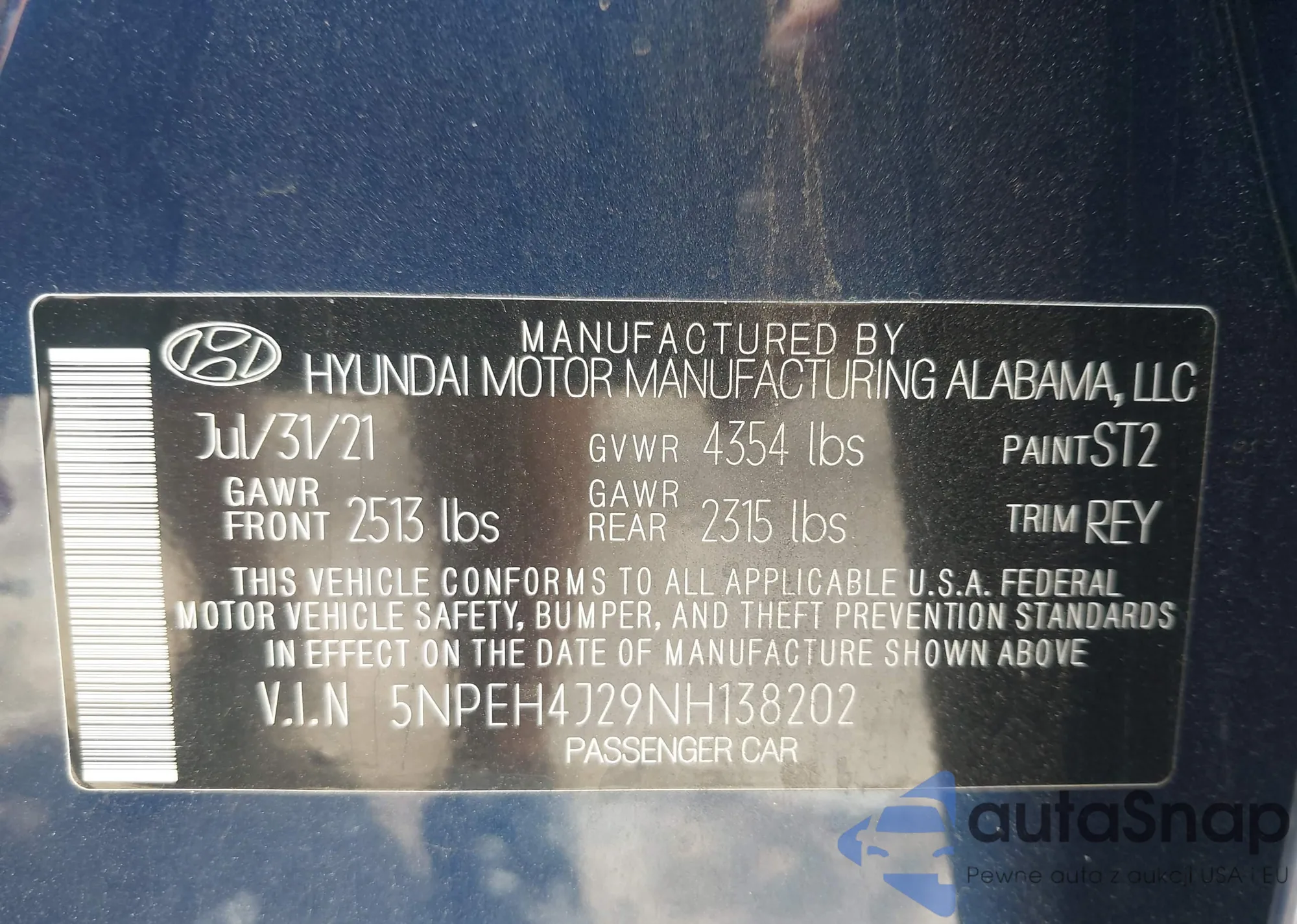 • VIN 5NPEH4J29NH138202