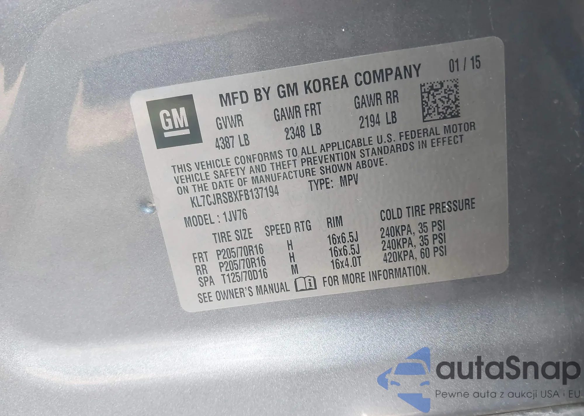 • VIN KL4CJESB5KB721406