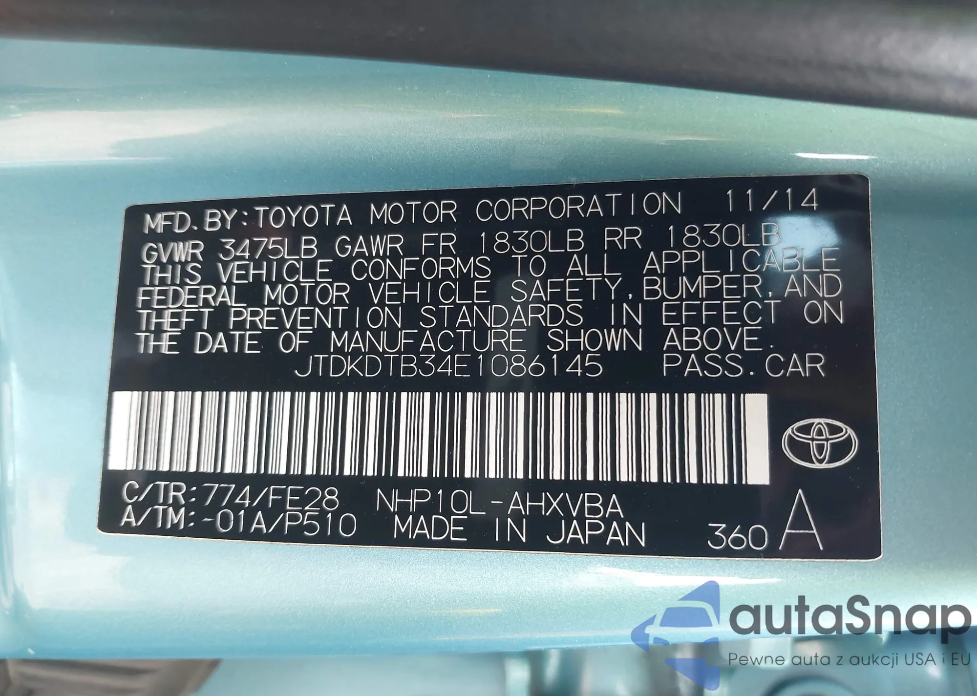 • VIN JTDKDTB34E1086145