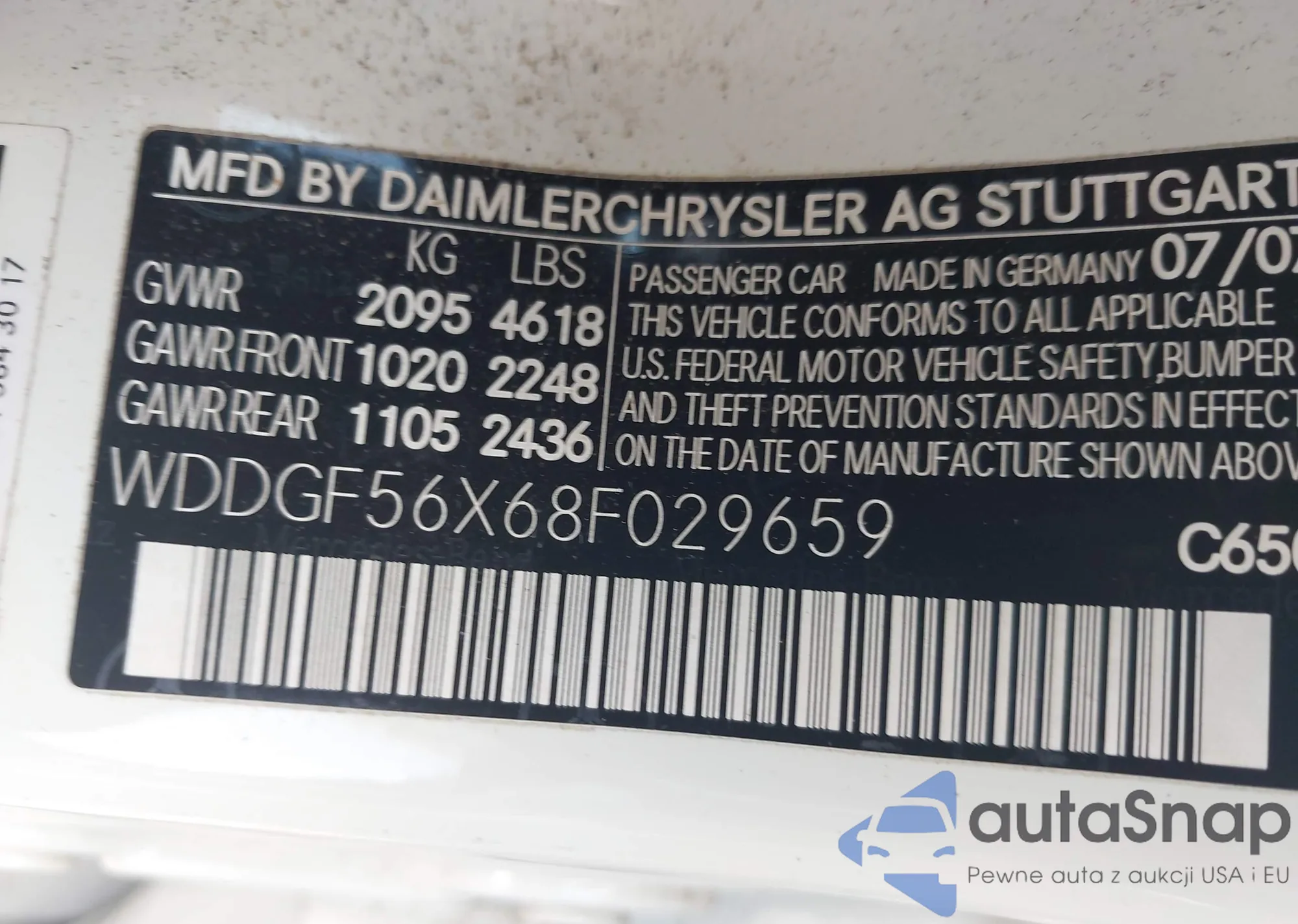 LOT: 42933495 VIN: WDDGF56X68F029659