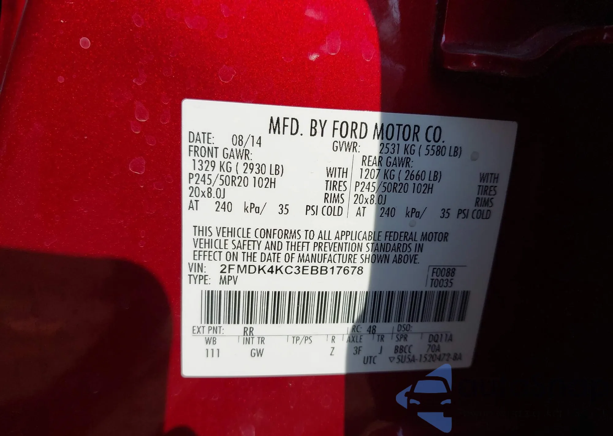 • VIN 2FMDK4KC3EBB17678