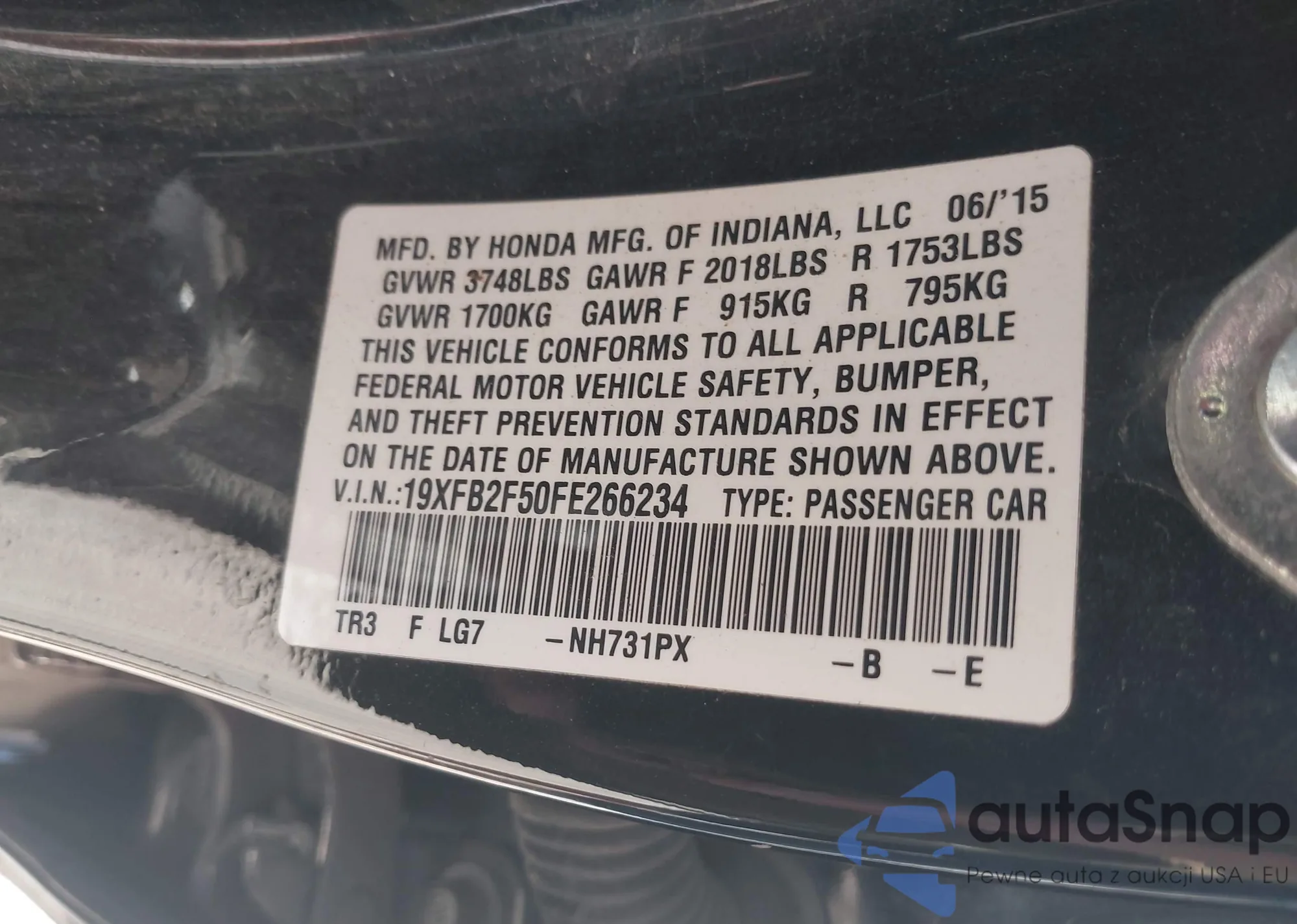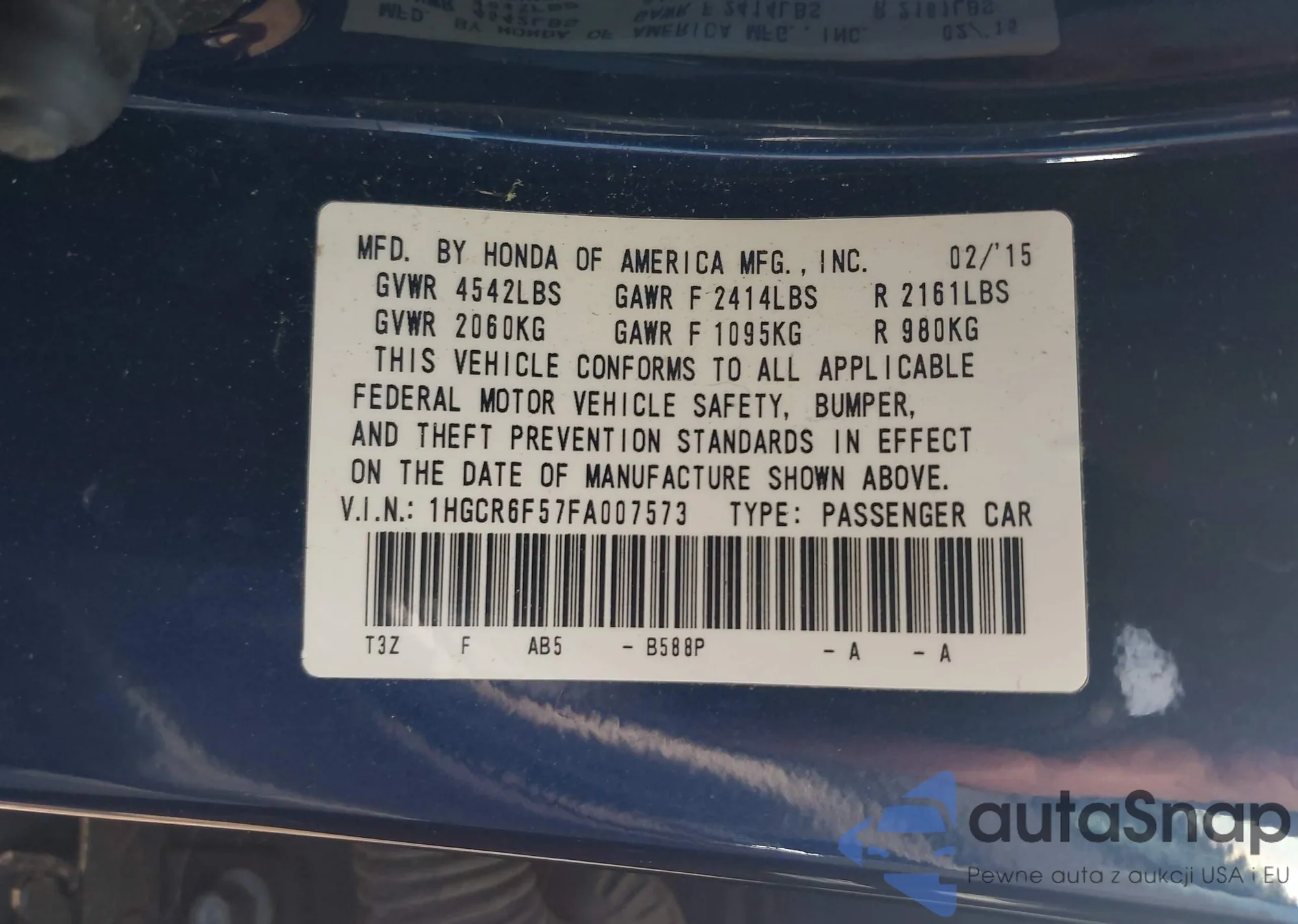 LOT: 42662698 VIN: 1HGCR6F57FA007573