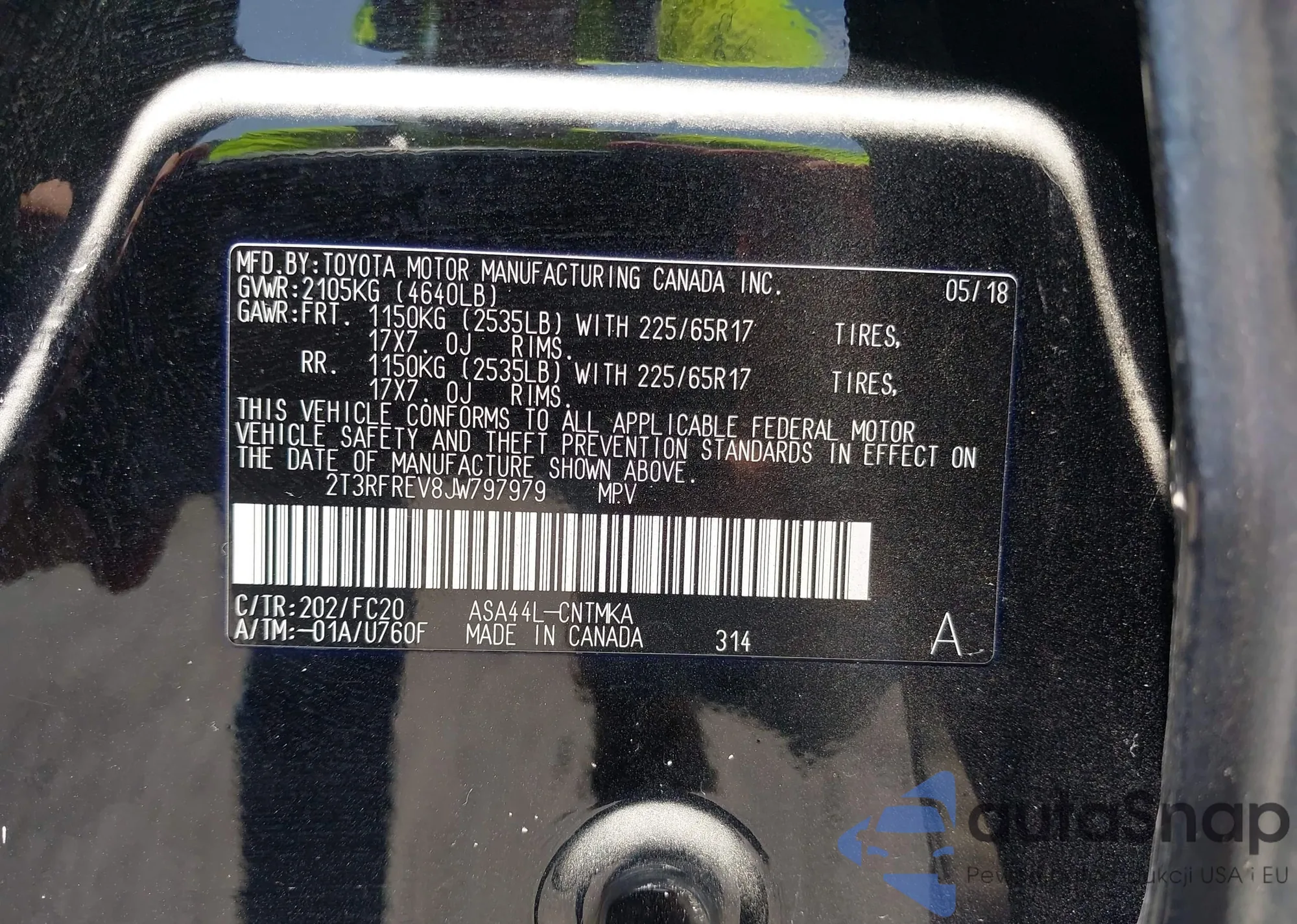LOT: 42785775 VIN: JTDACAAJ0S3020307