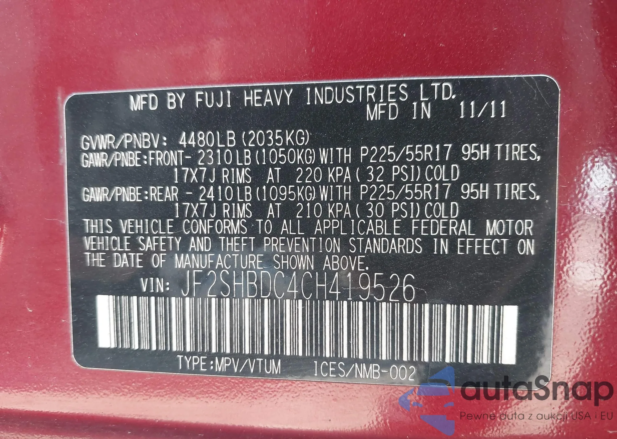 • VIN JF2SHBDC4CH419526
