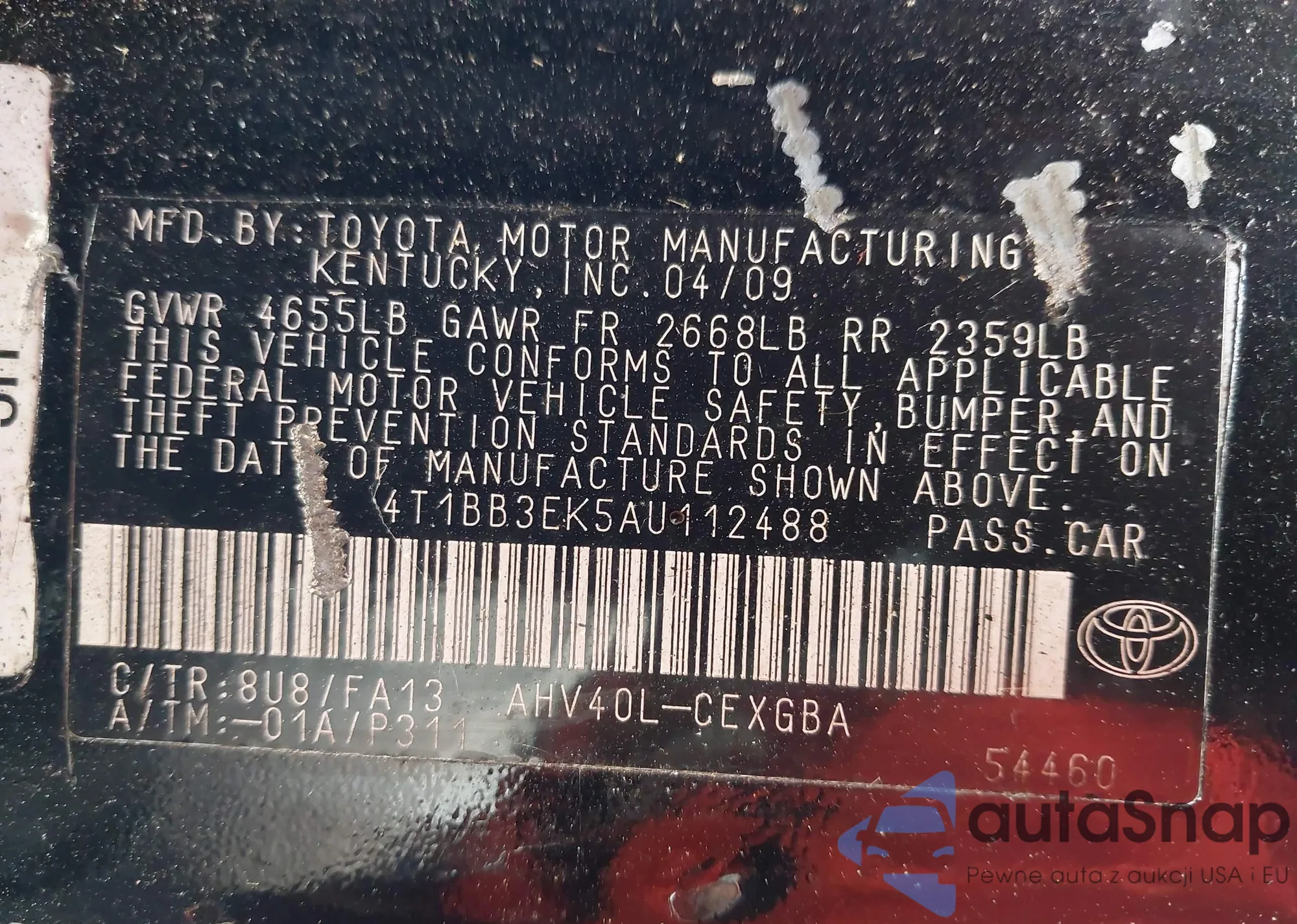 • VIN 4T1BB3EK5AU112488