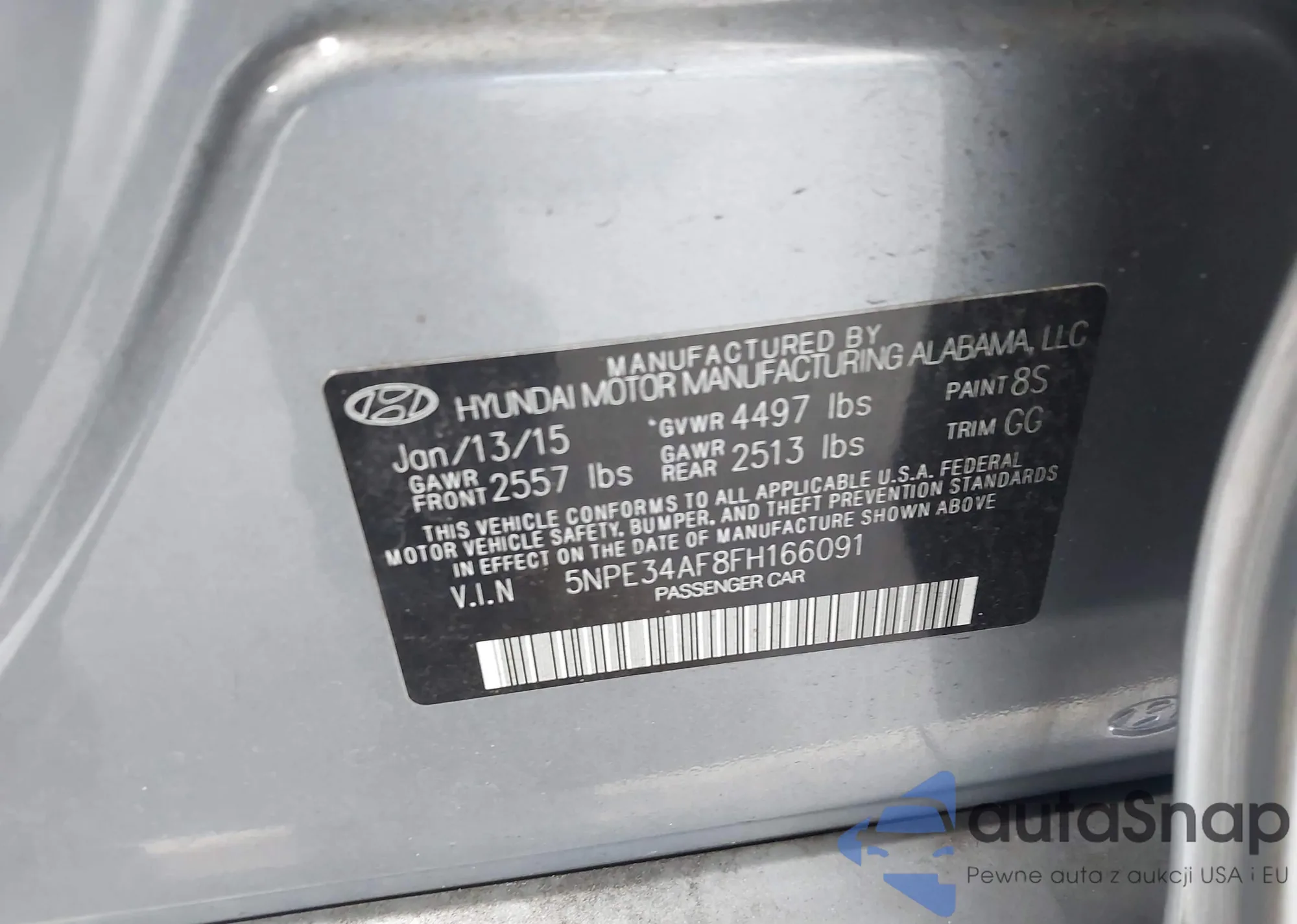 • VIN 5NPE34AF8FH166091