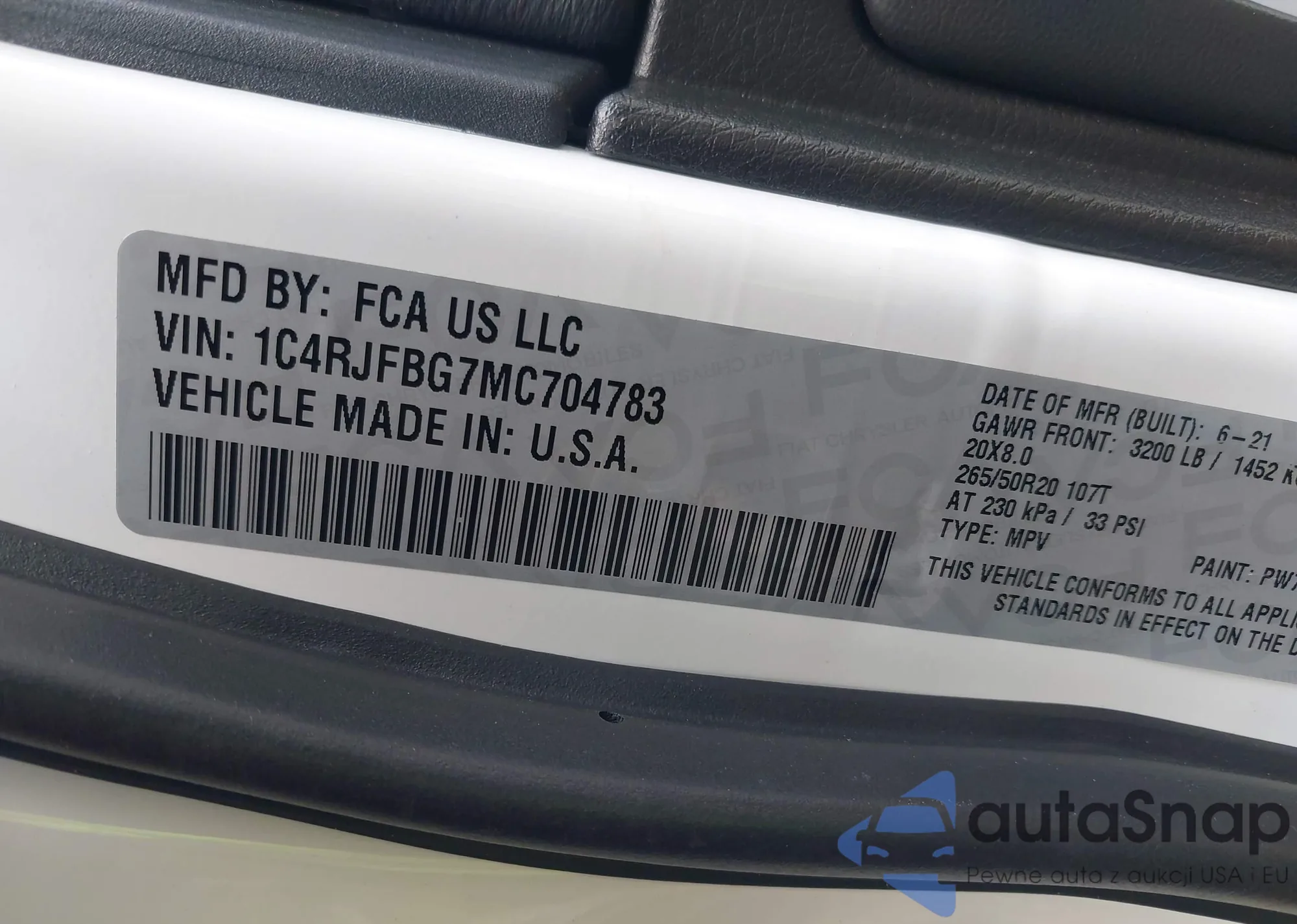 • VIN 1C4RJFBG7MC704783