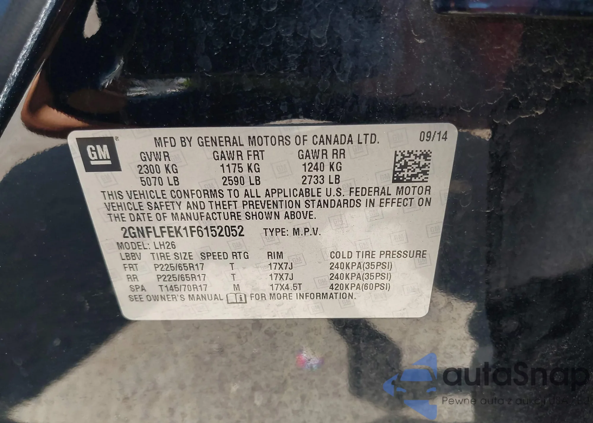 • VIN 2GNFLFEK1F6152052