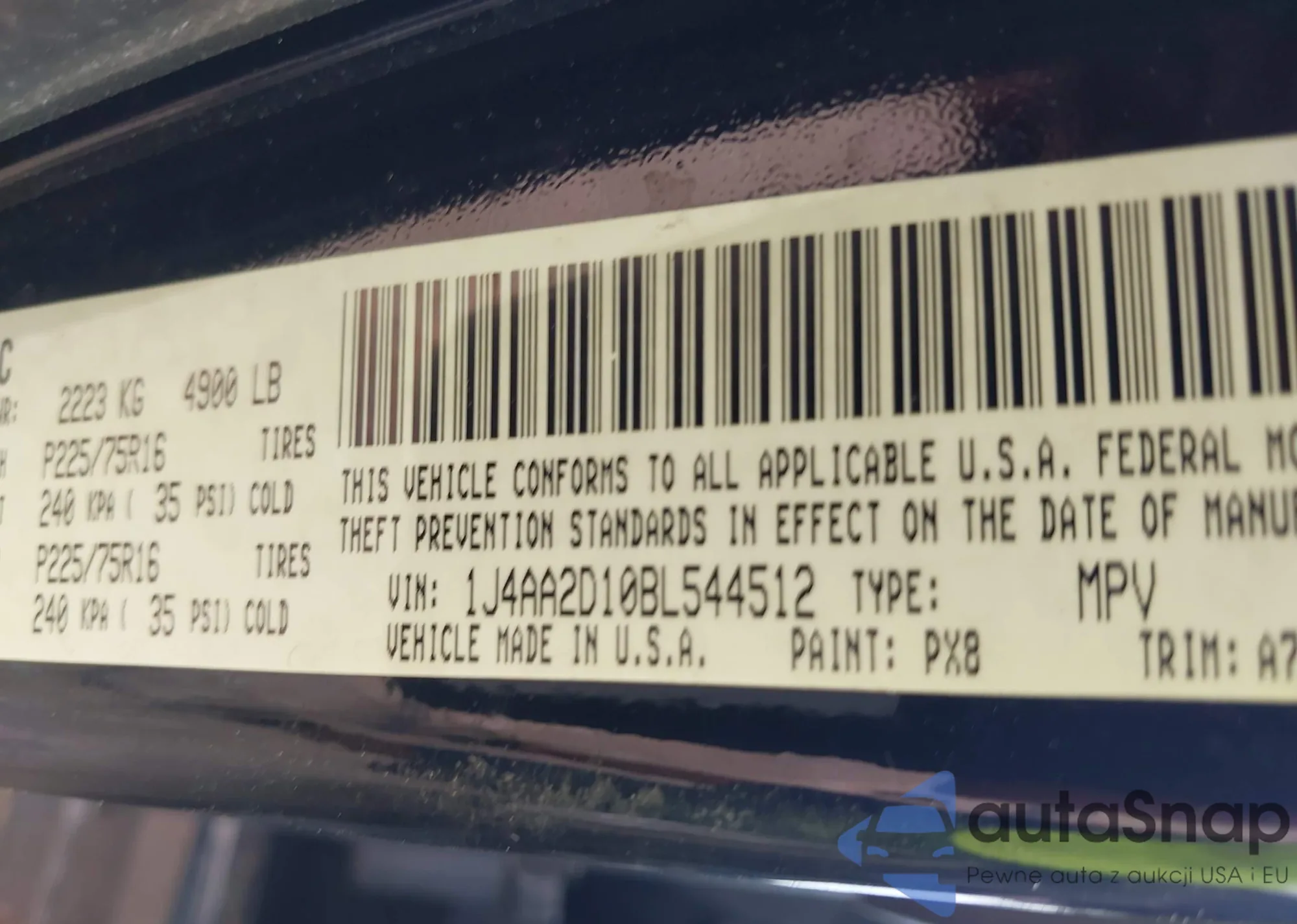 • VIN 1J4AA2D10BL544512