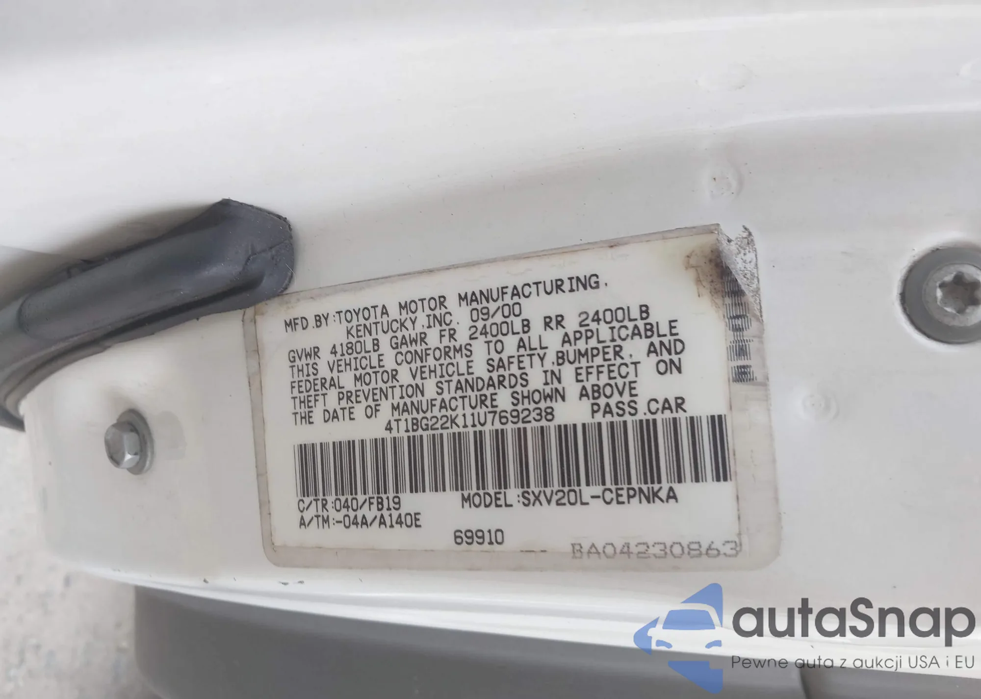 LOT: 42868110 VIN: 4T1BG22K11U769238