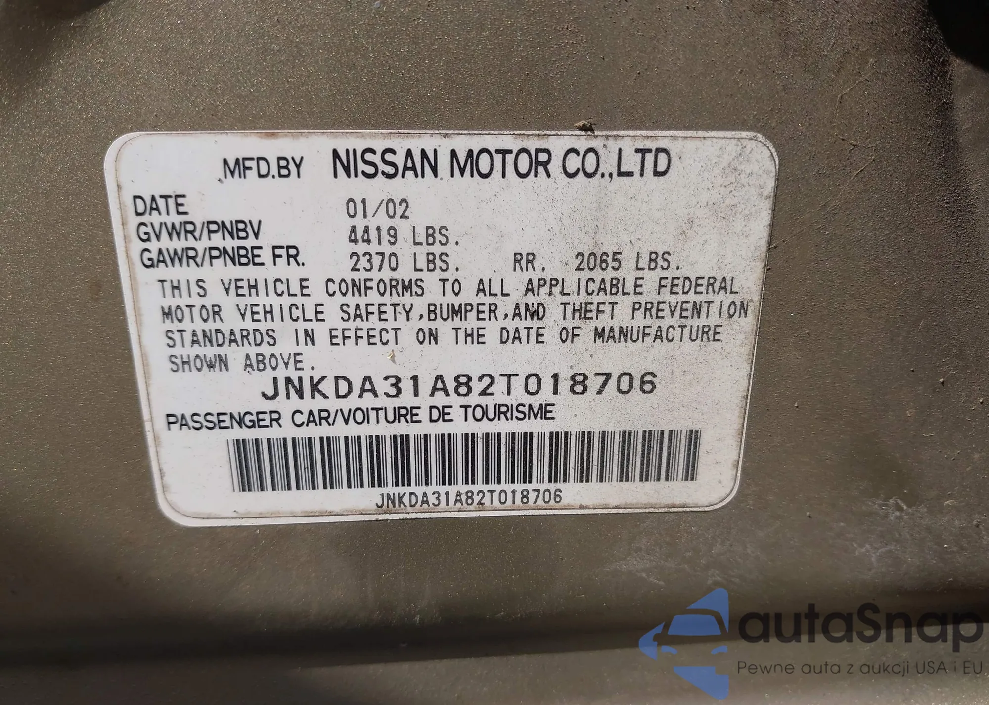 • VIN JNKDA31A82T018706