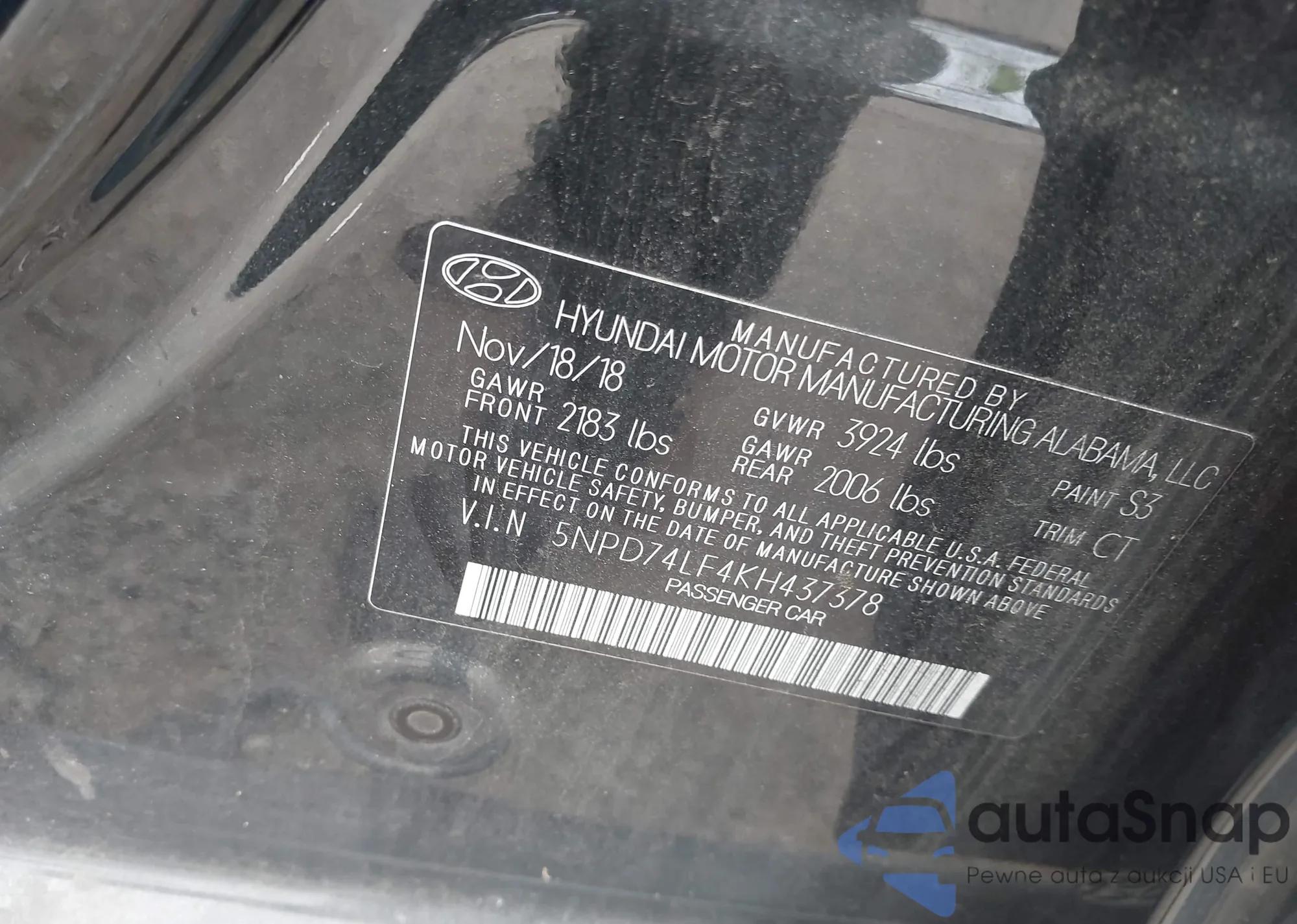 • VIN 5NPD74LF4KH437378