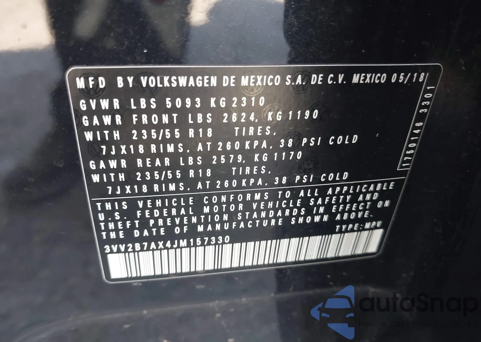LOT: 42345135 VIN: WA1VXAF77MD035798