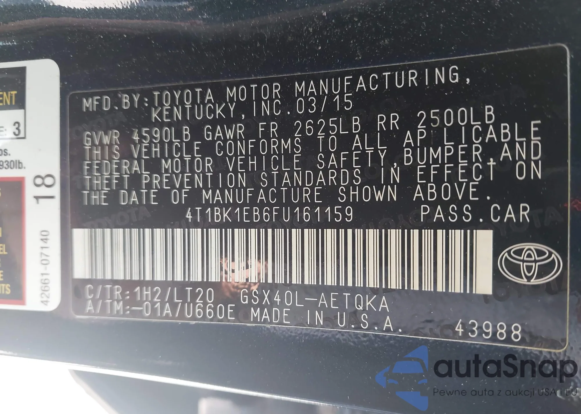 LOT: 42590872 VIN: JTMZF4DV6B5033092