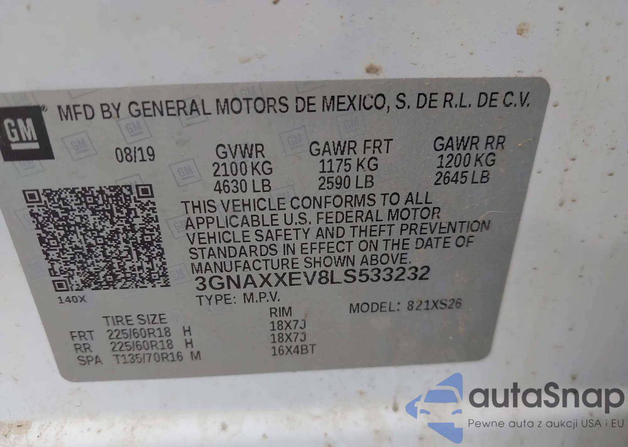 LOT: 42629202 VIN: 3GNAXXEV8LS533232