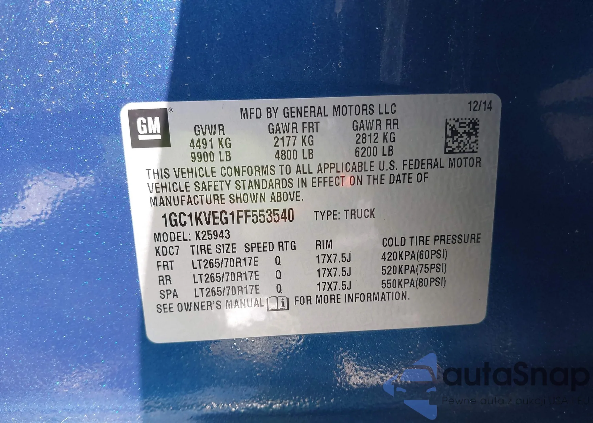 • VIN 1GC1KVEG1FF553540