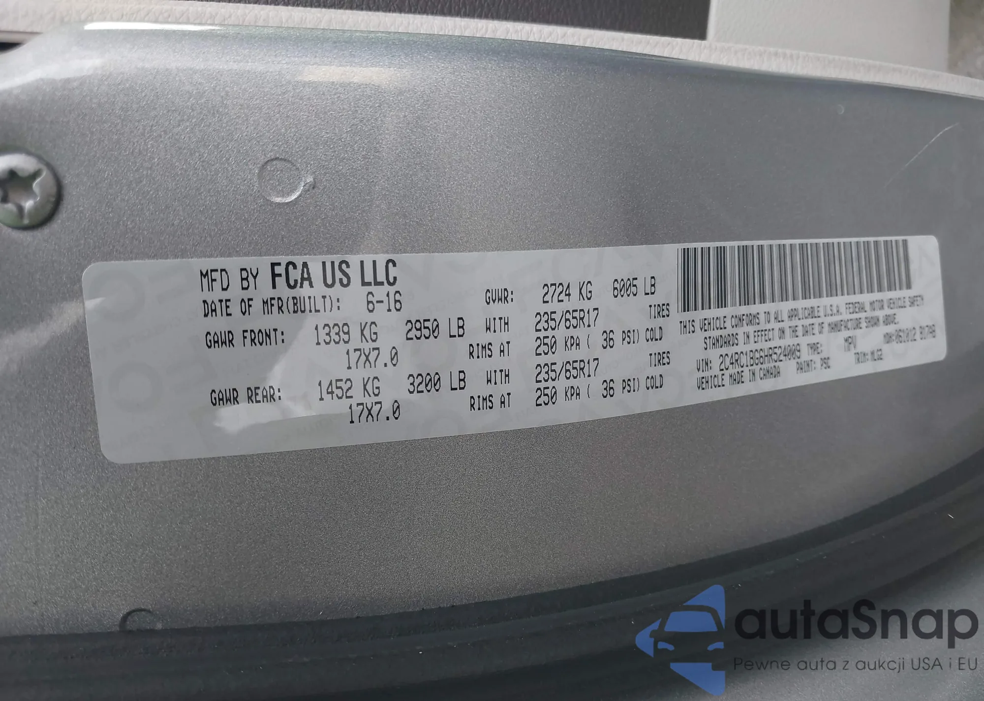 • VIN 2C4RC1BG6HR524009