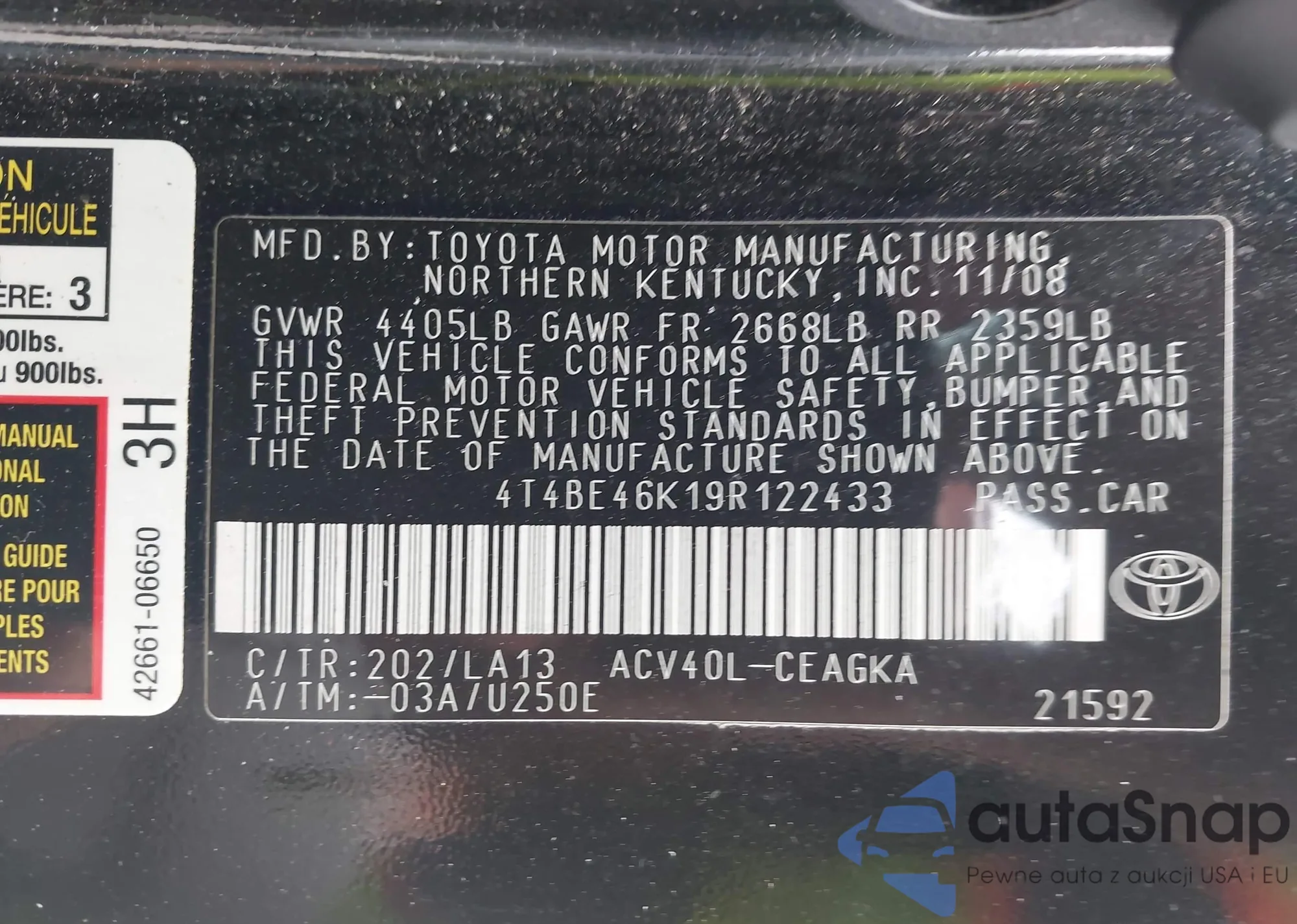 LOT: 43061455 VIN: 4T4BE46K19R122433