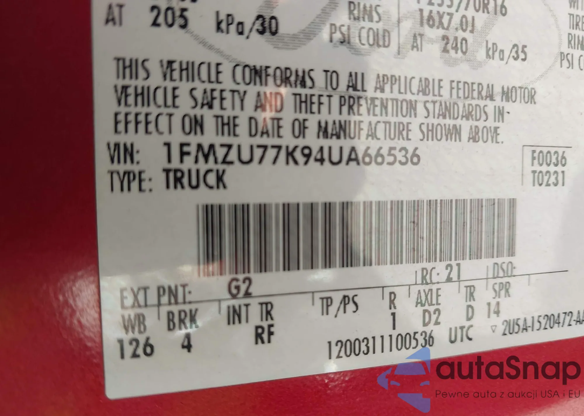 LOT: 43084977 VIN: 1FMZU77K94UA66536