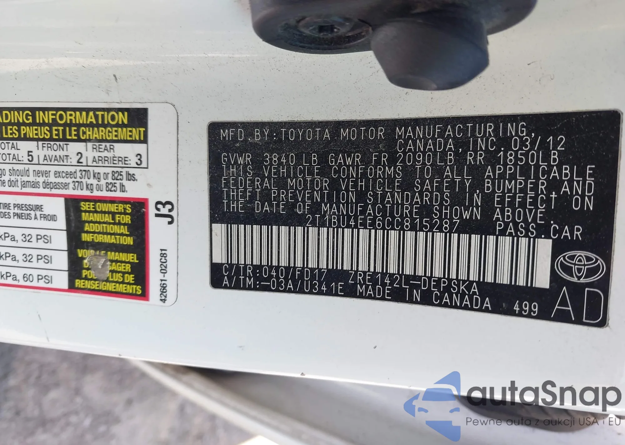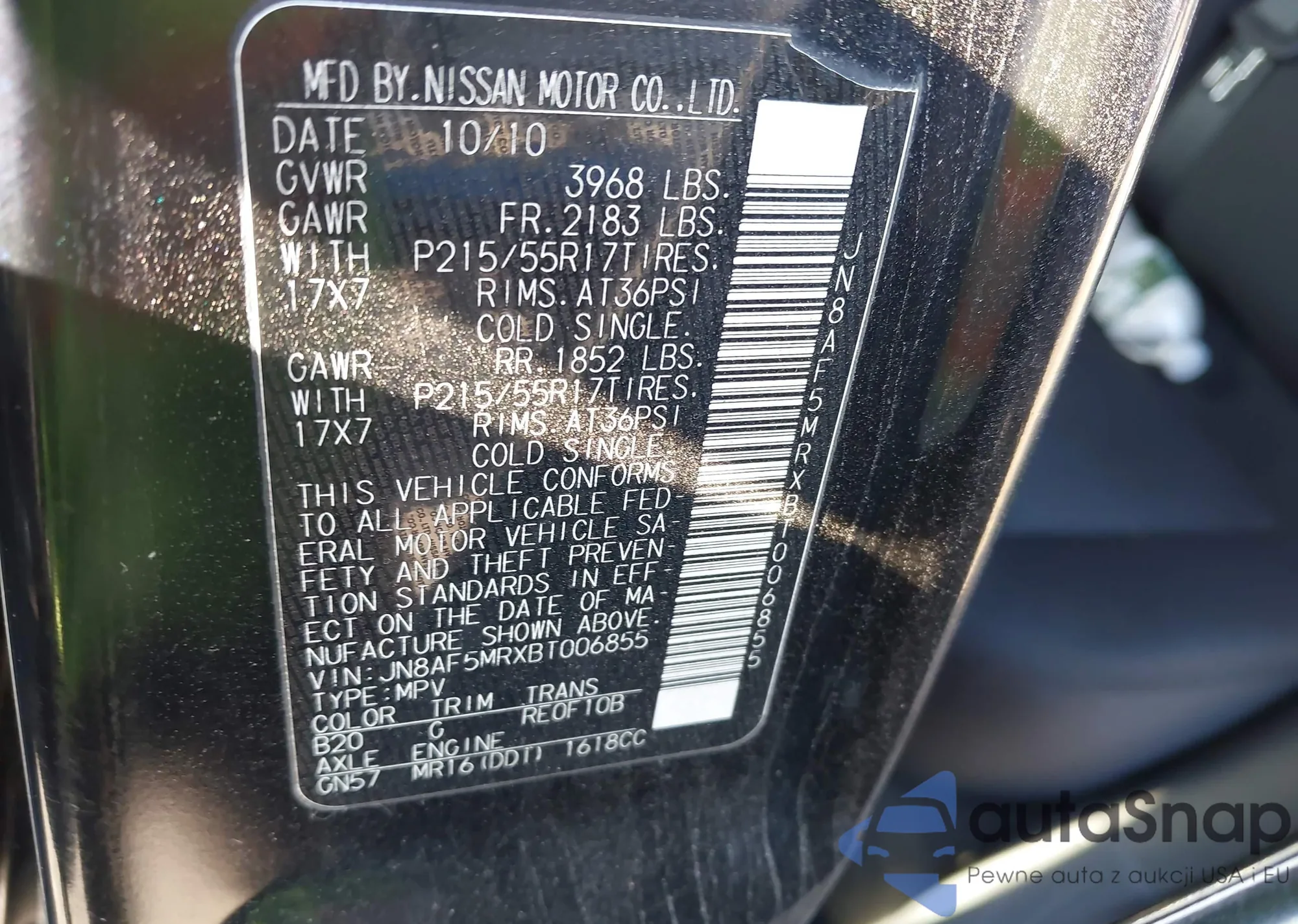 LOT: 42538008 VIN: JN8AF5MRXBT006855