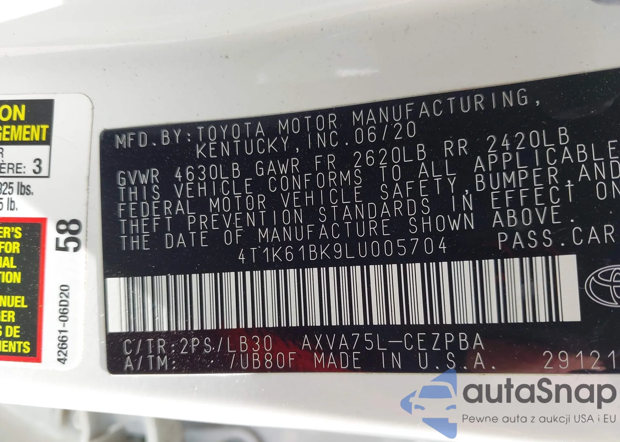 • VIN 4T1K61BK9LU005704