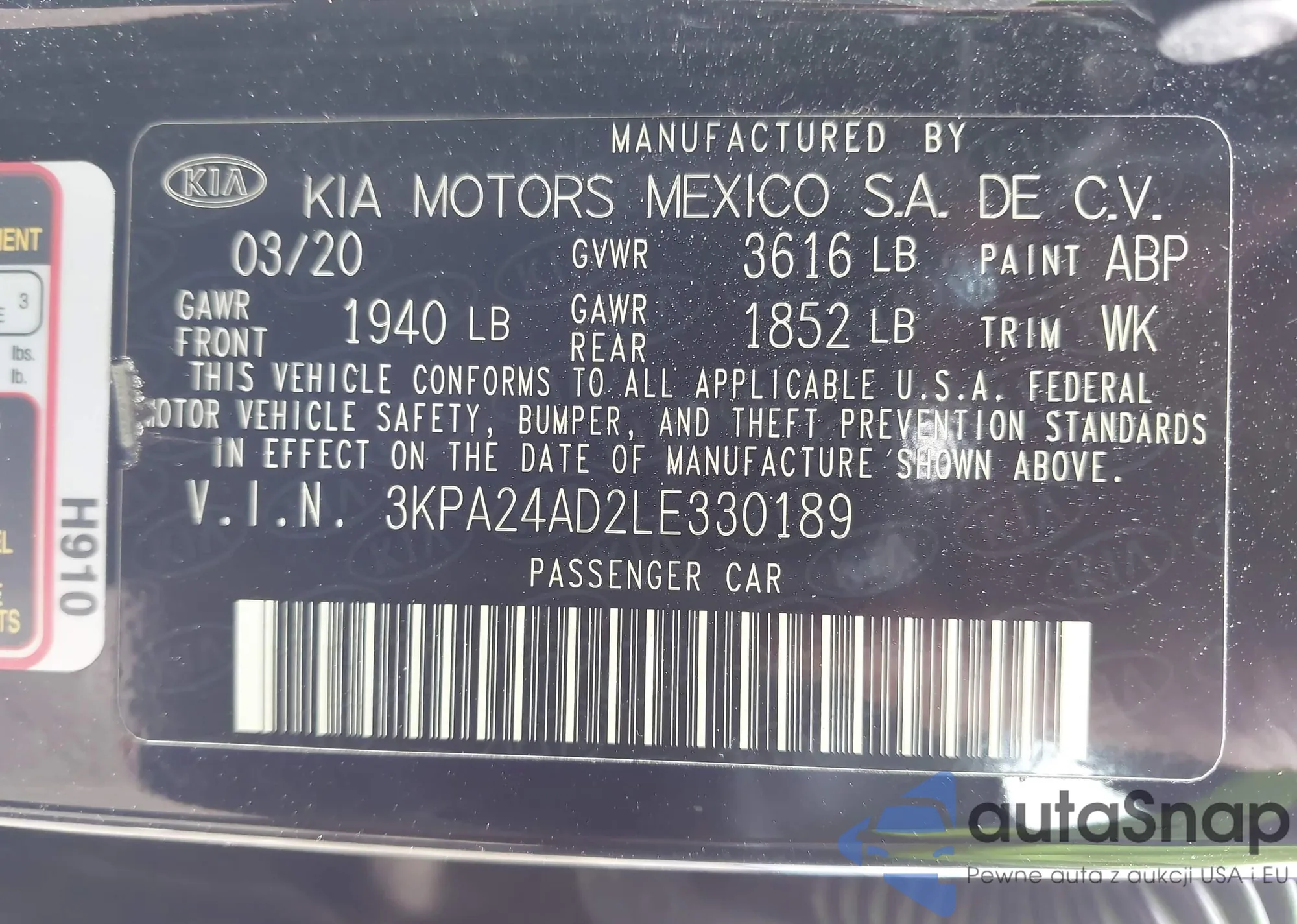 • VIN 3KPA24AD2LE330189