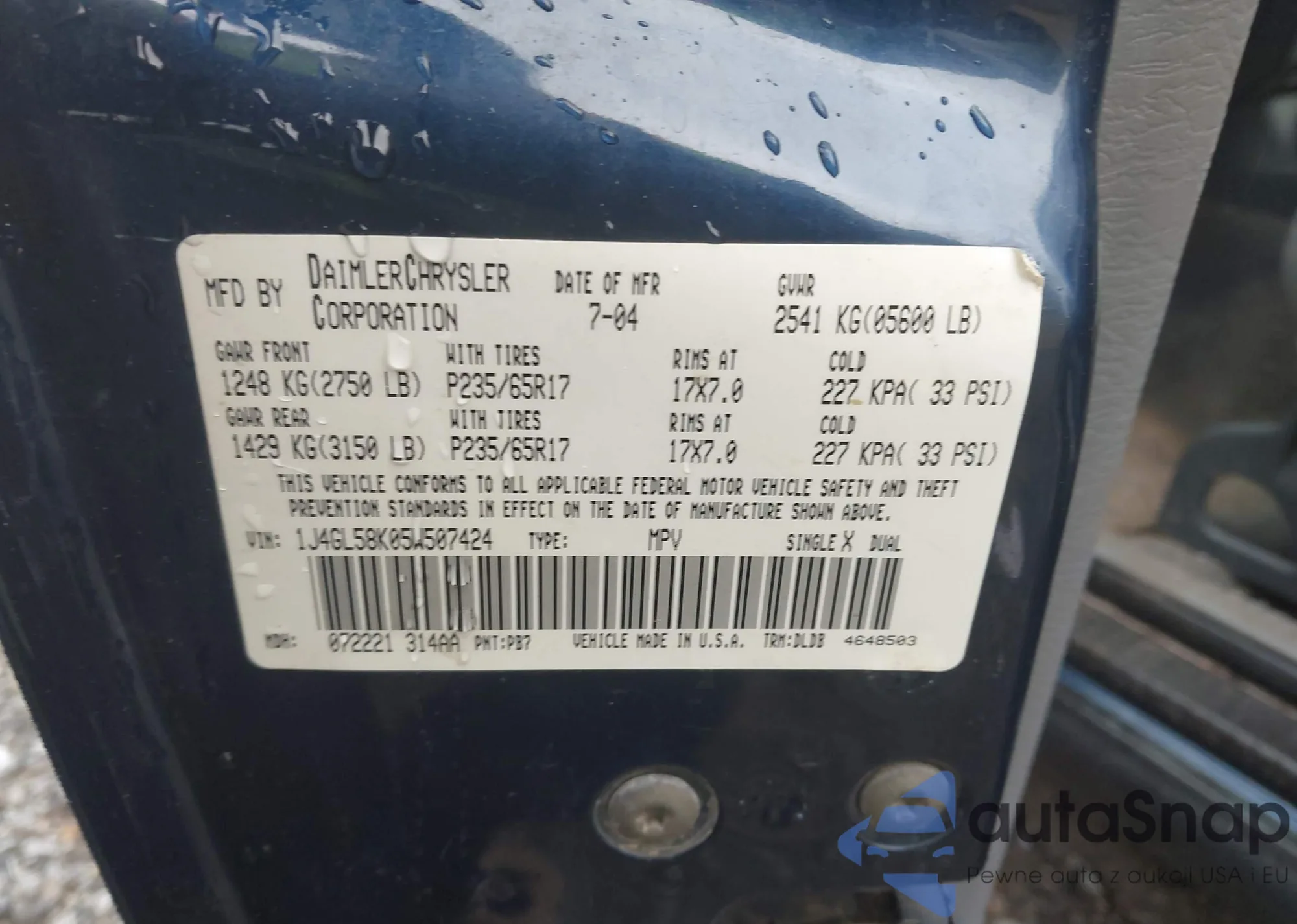 LOT: 42923264 VIN: 1J4GL58K05W507424