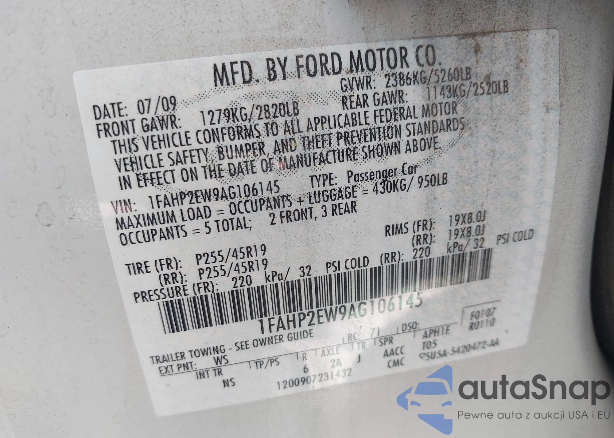 • VIN 1FAHP2EW9AG106145