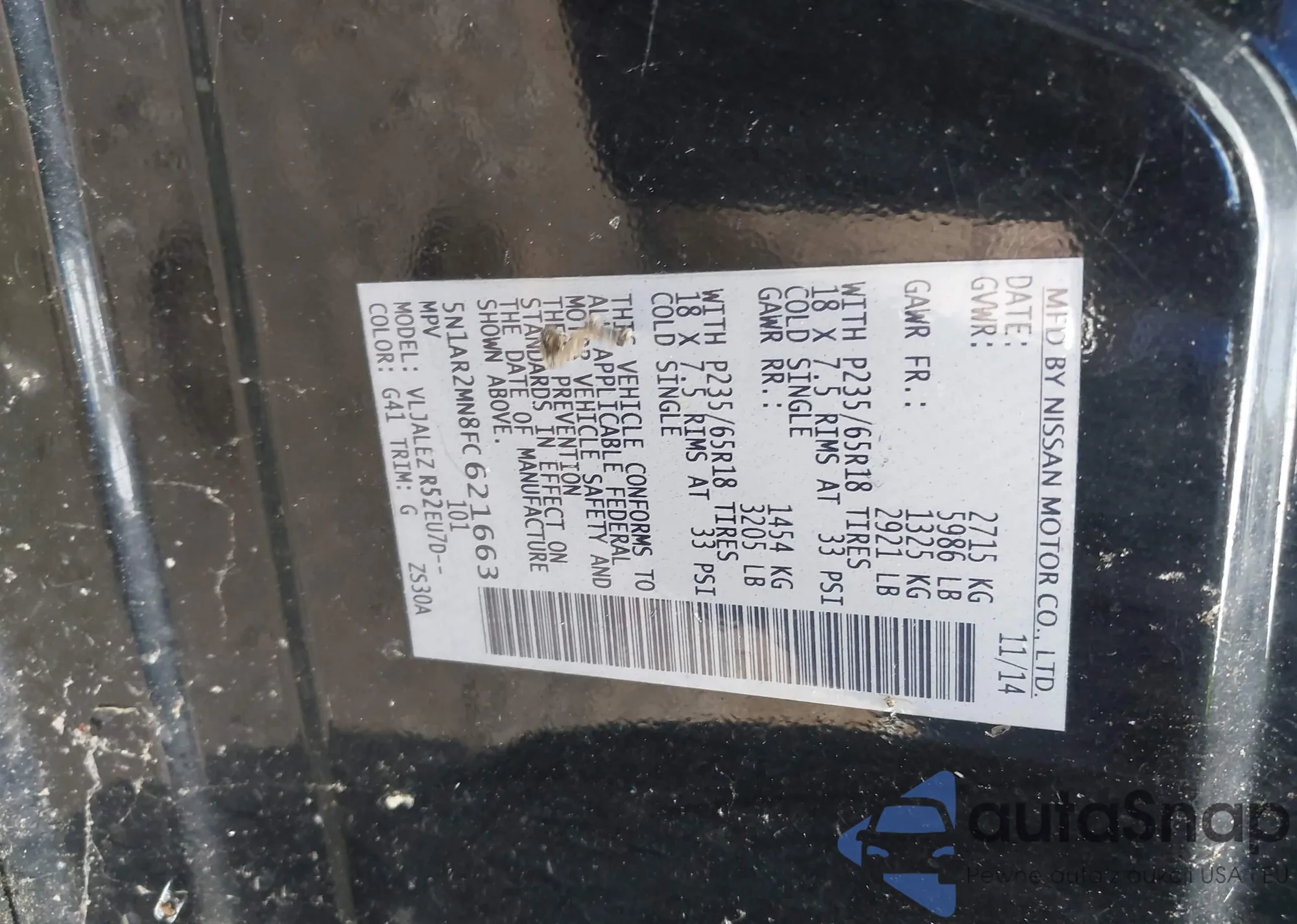 LOT: 42709775 VIN: 5N1AR2MN8FC621663