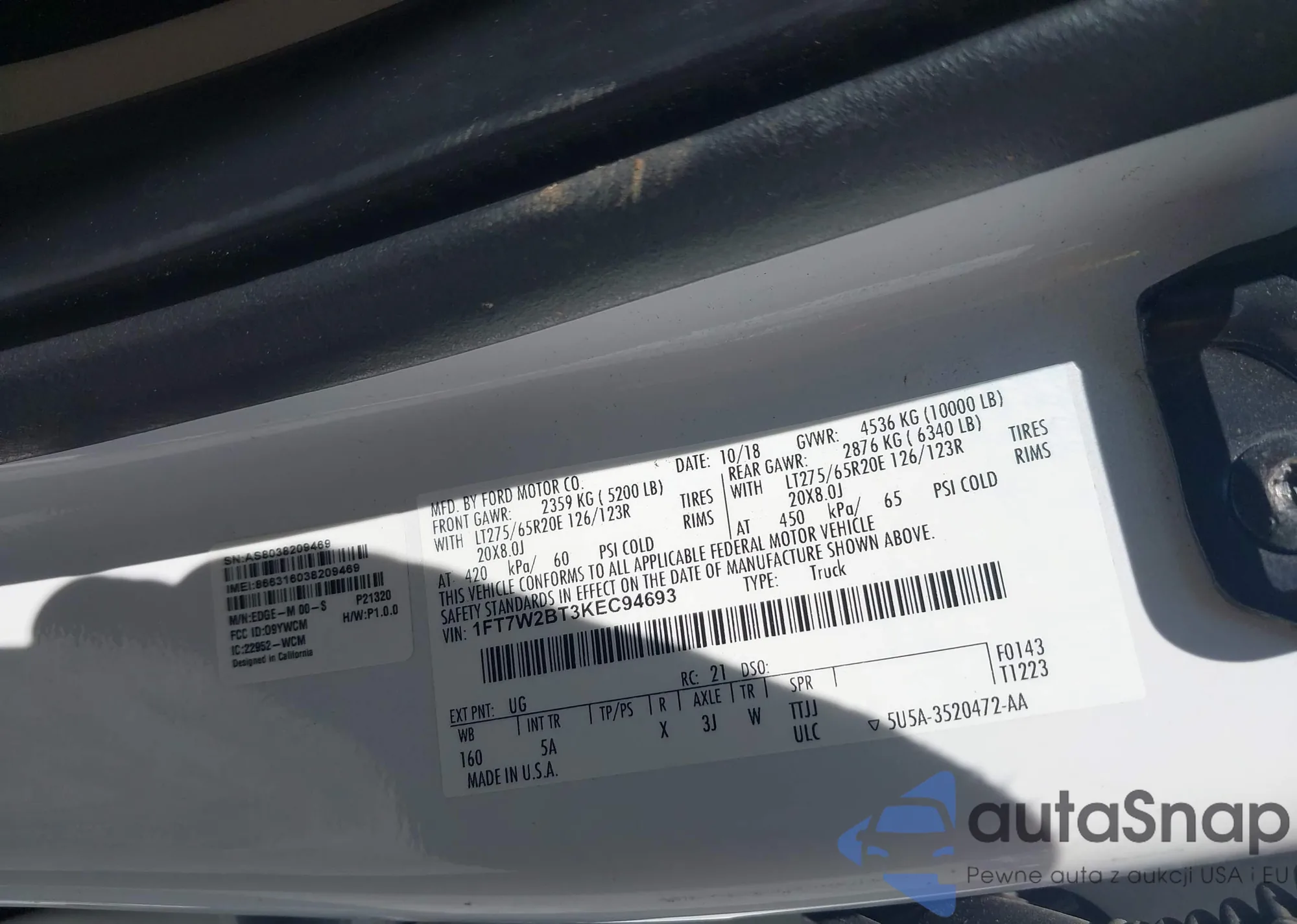LOT: 42598563 VIN: 1FTWW32F51ED82557