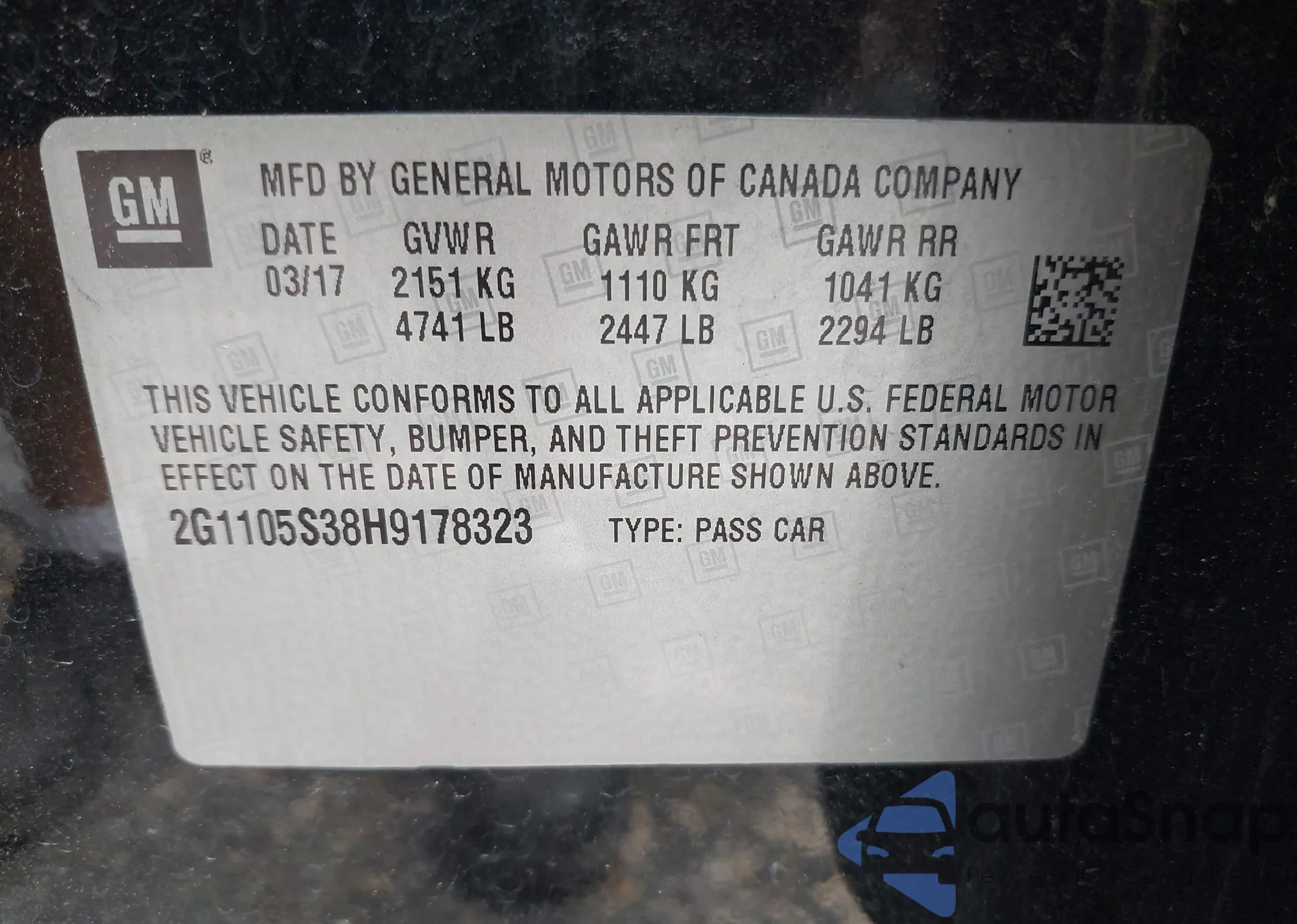• VIN 2G1105S38H9178323