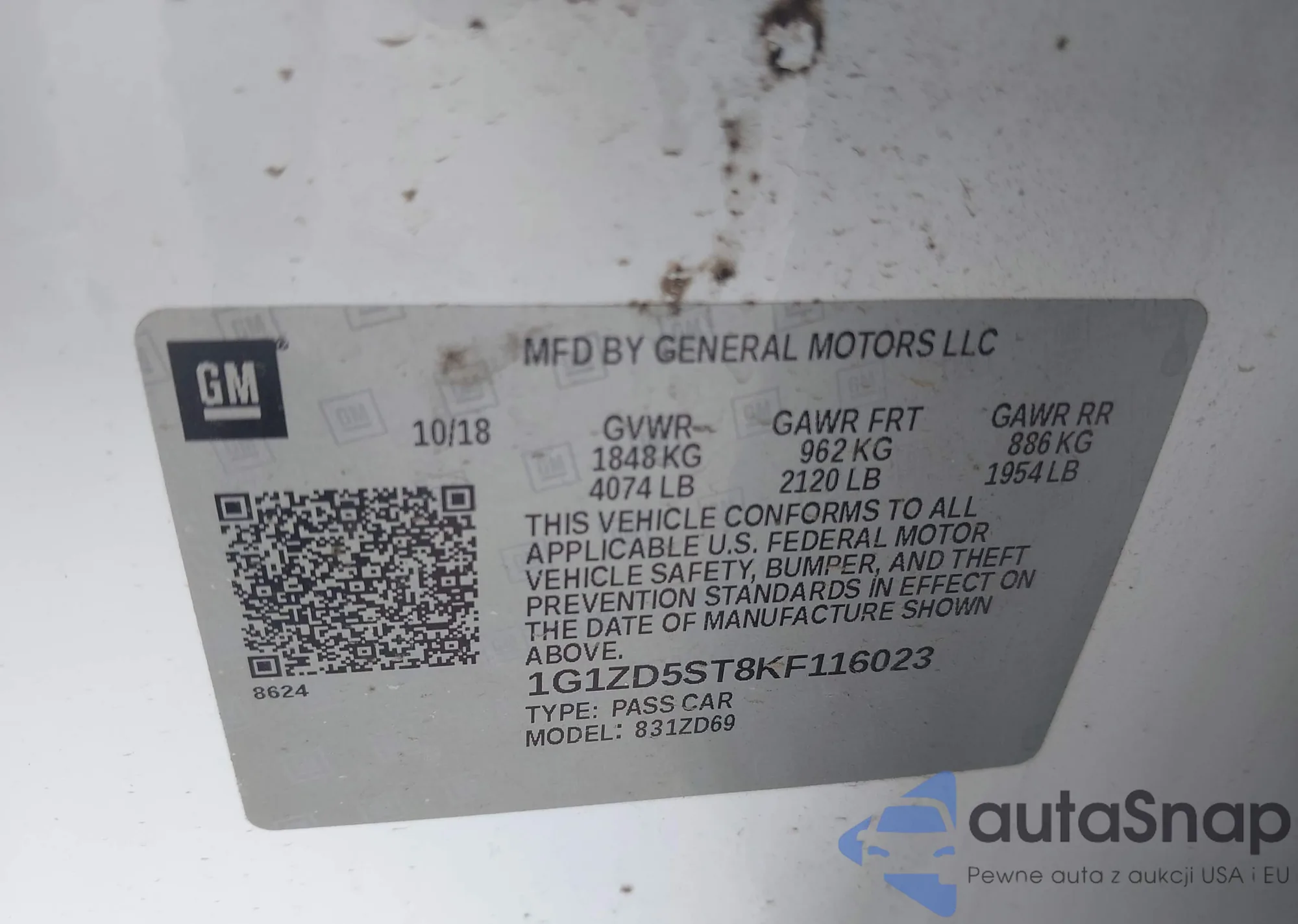 • VIN 1G1ZD5ST8KF116023