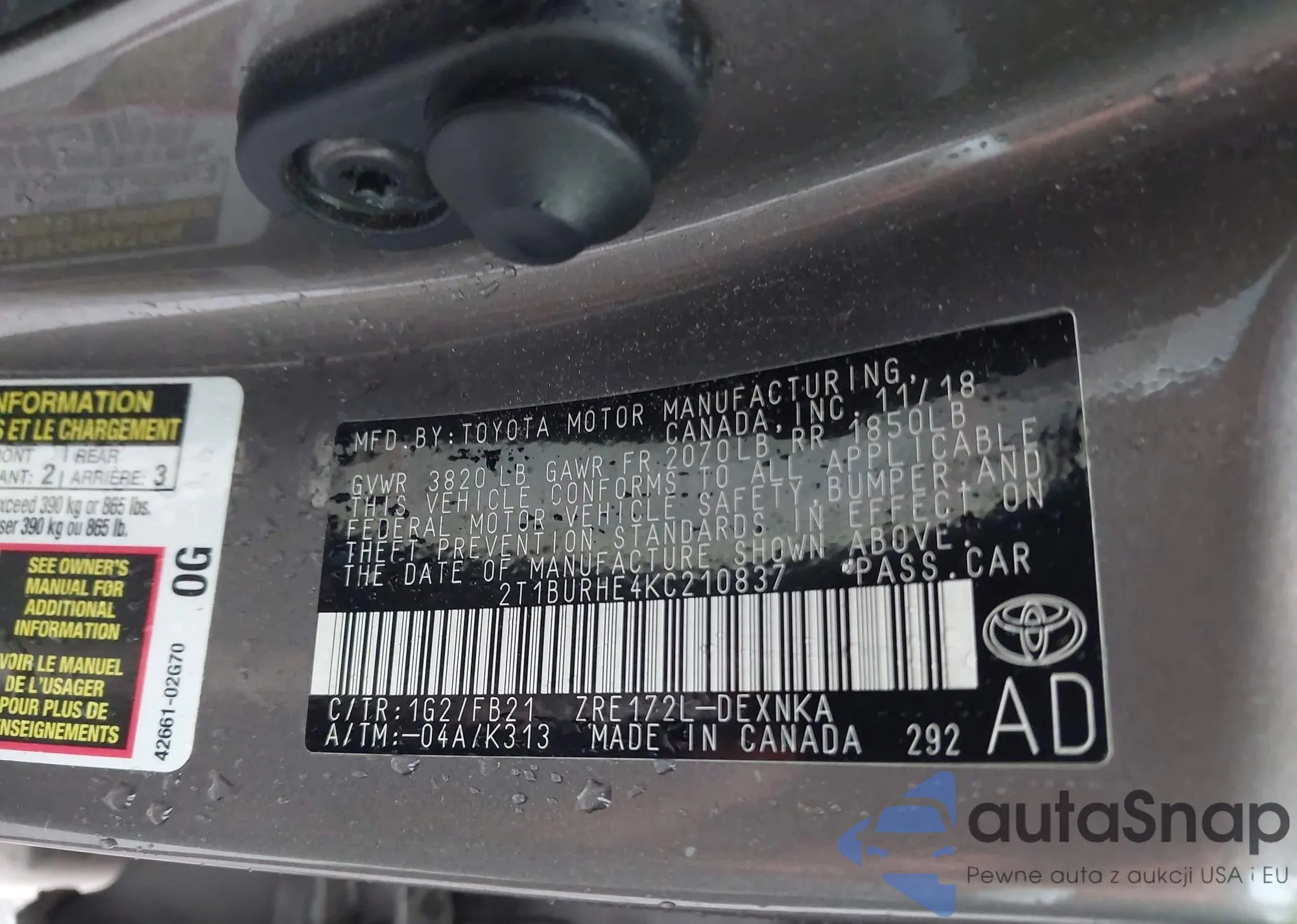 LOT: 42932572 VIN: 2T1BURHE4KC210837