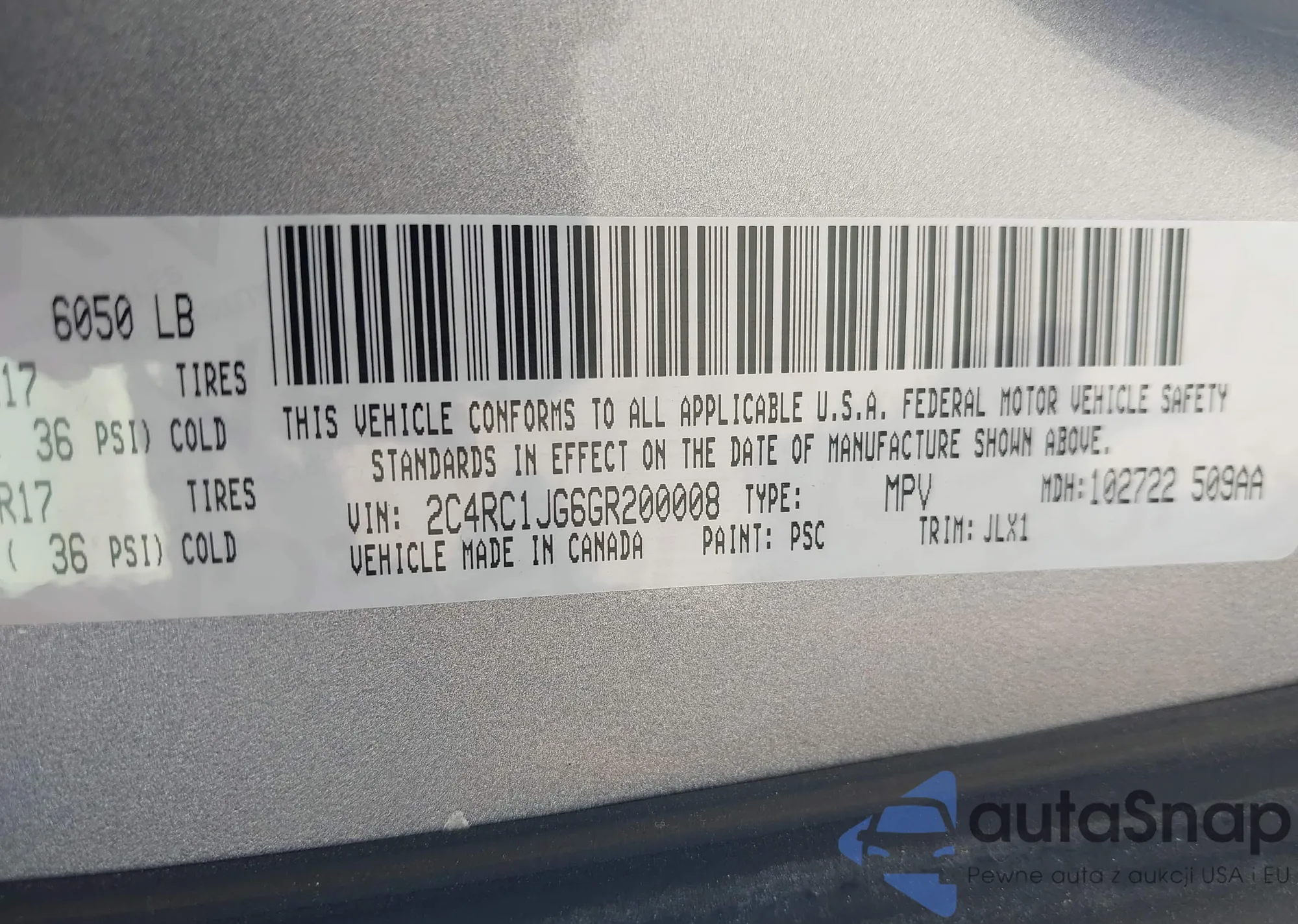 • VIN 2C4RC1JG6GR200008