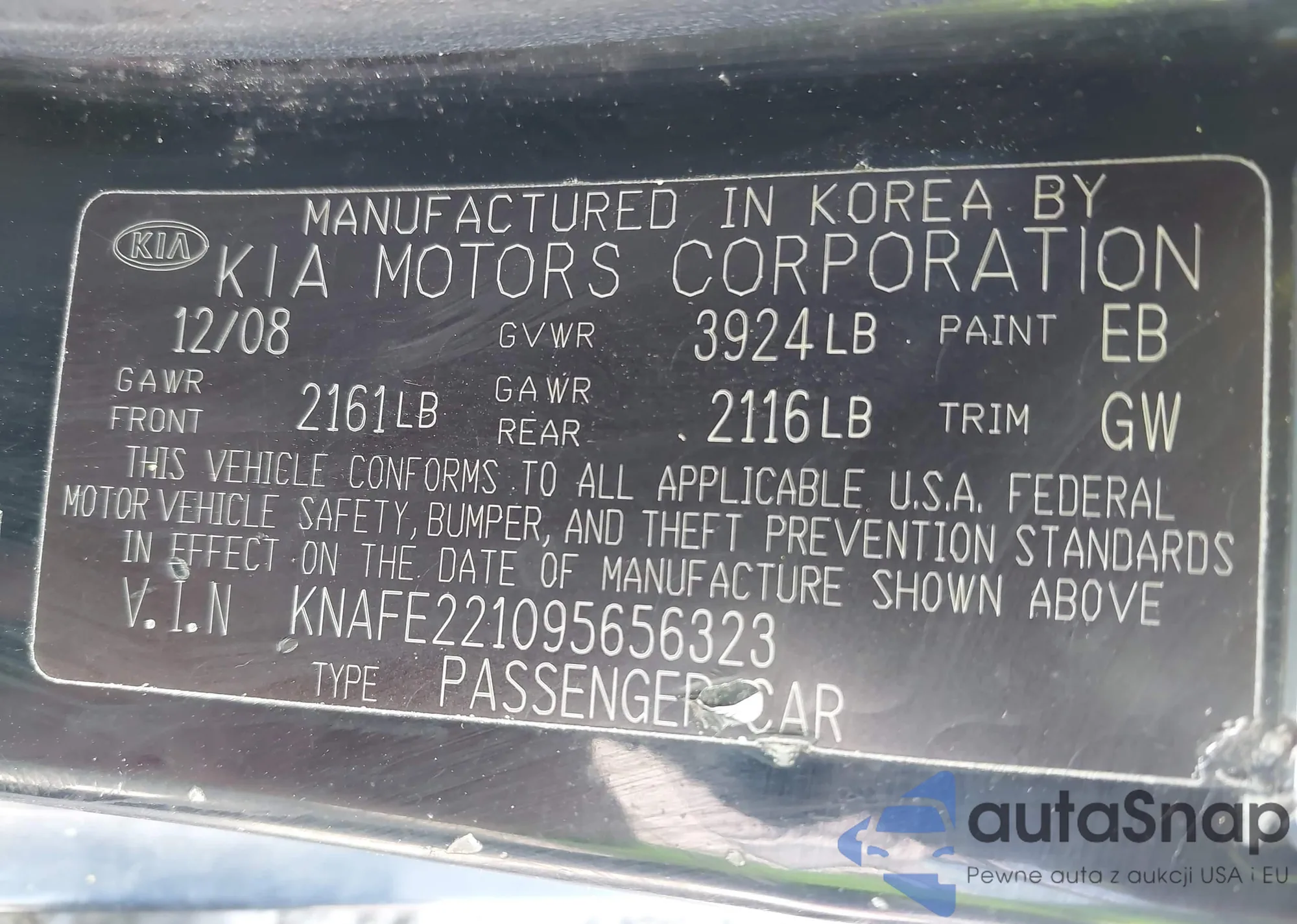 LOT: 42957300 VIN: KNAFE221095656323