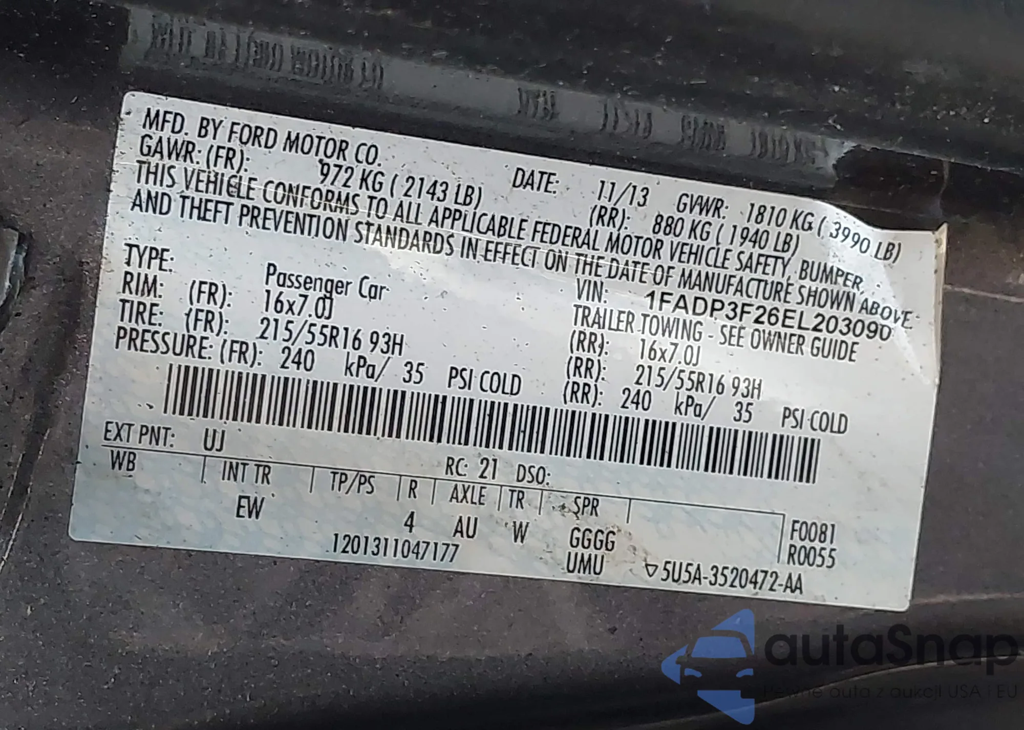 LOT: 42894378 VIN: 3FADP4EJXBM200122