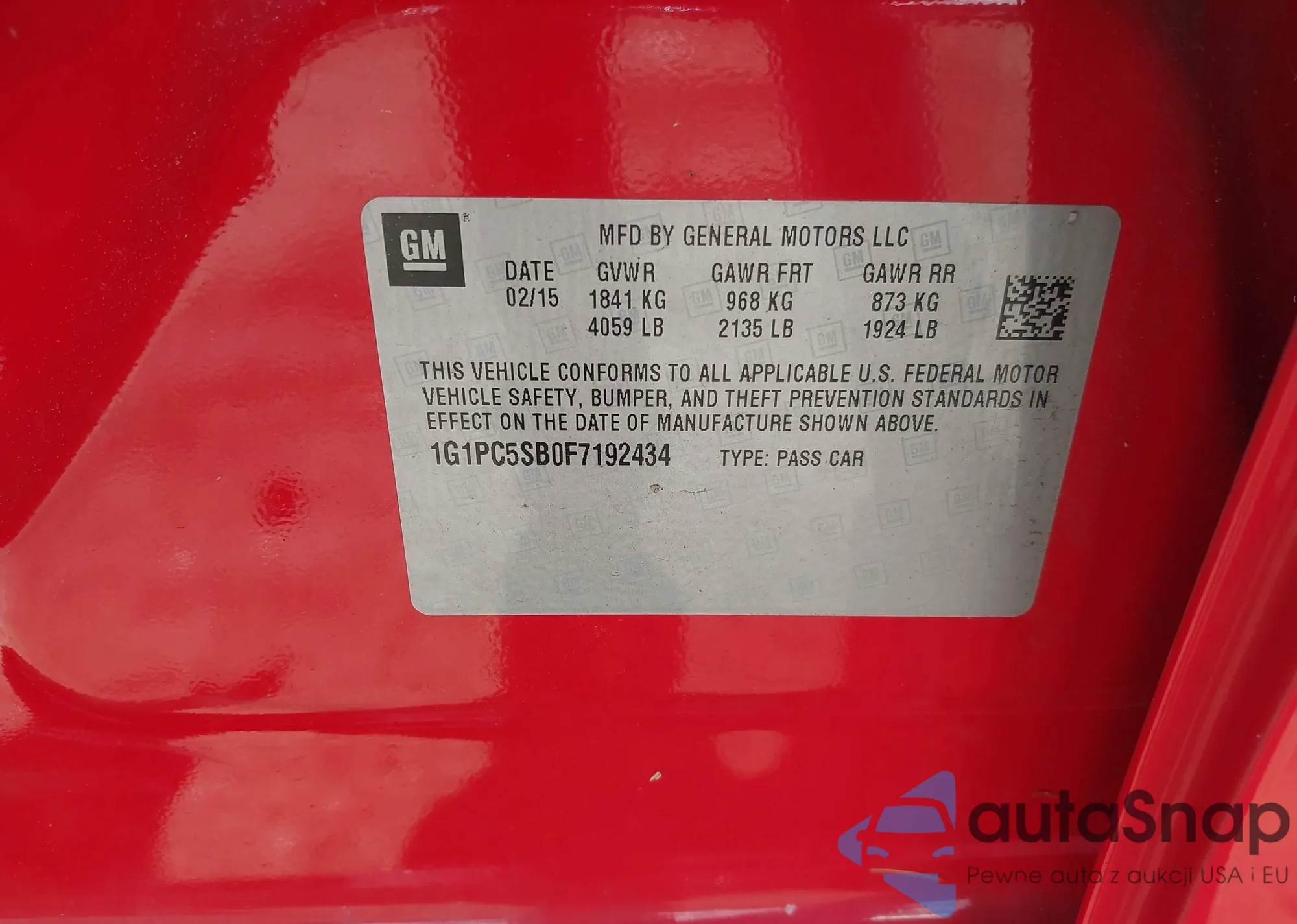 LOT: 43122874 VIN: 1G1PC5SB0F7192434