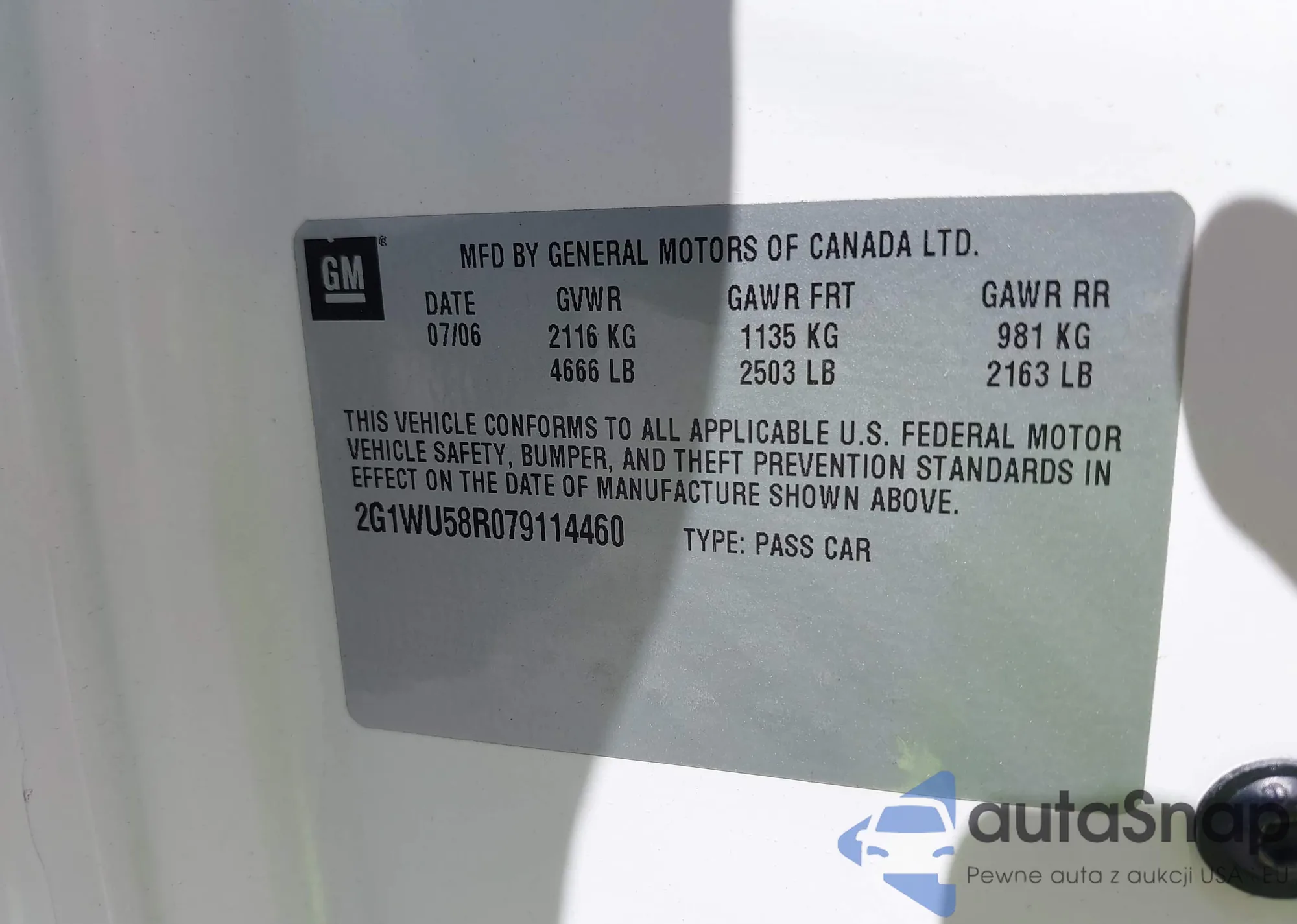 • VIN 2G1WU58R079114460