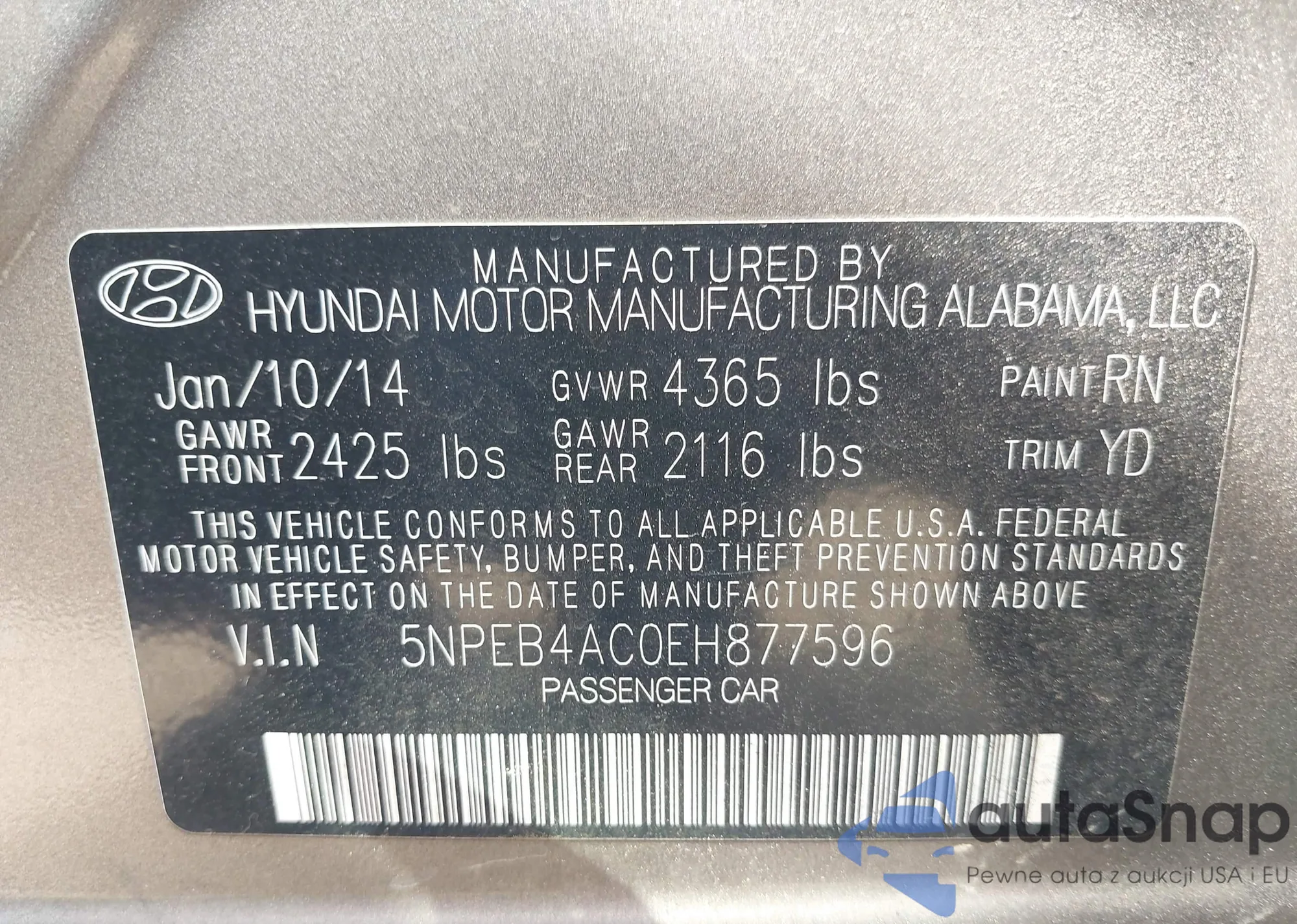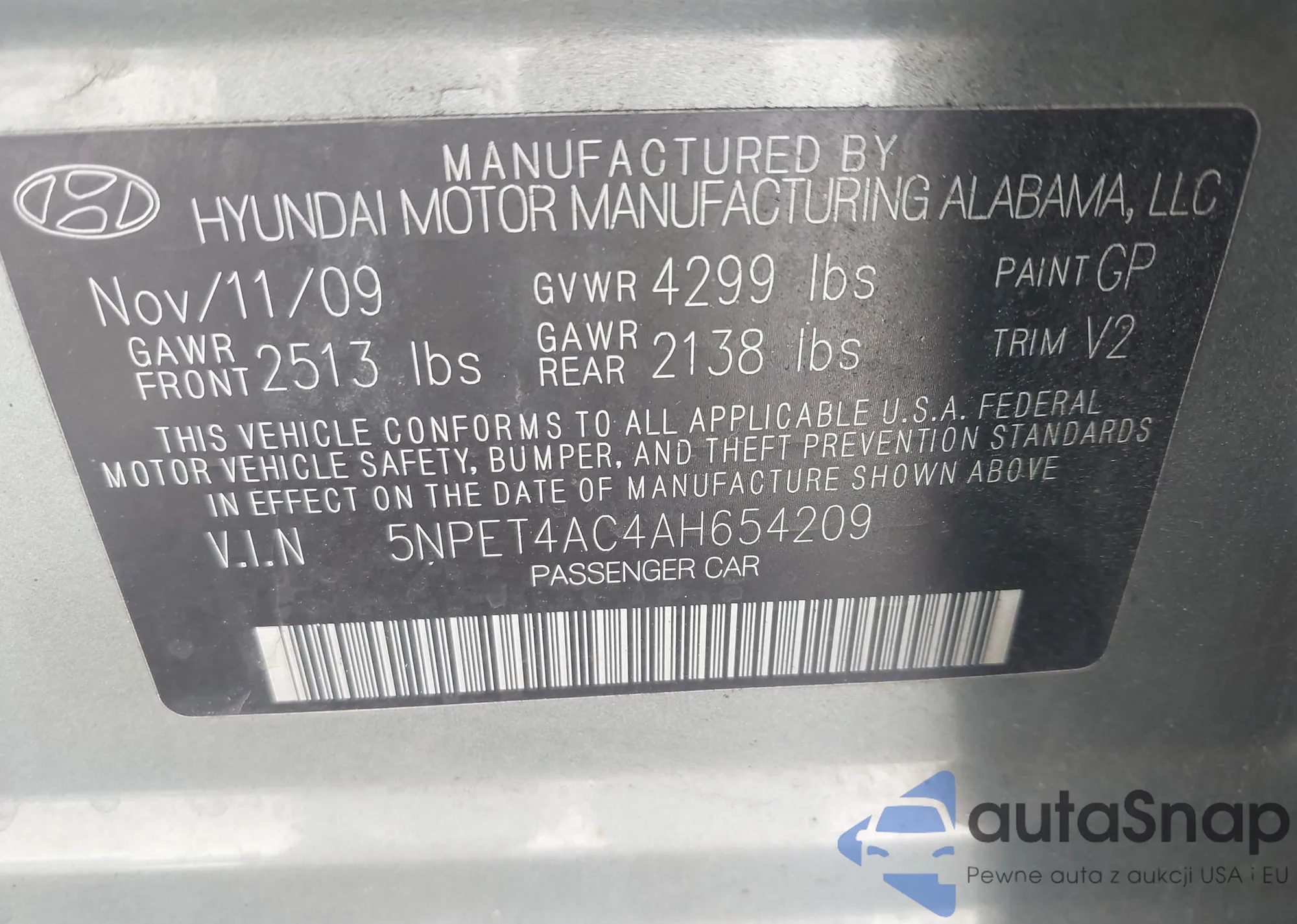 • VIN 5NPEU4AF9AH617843