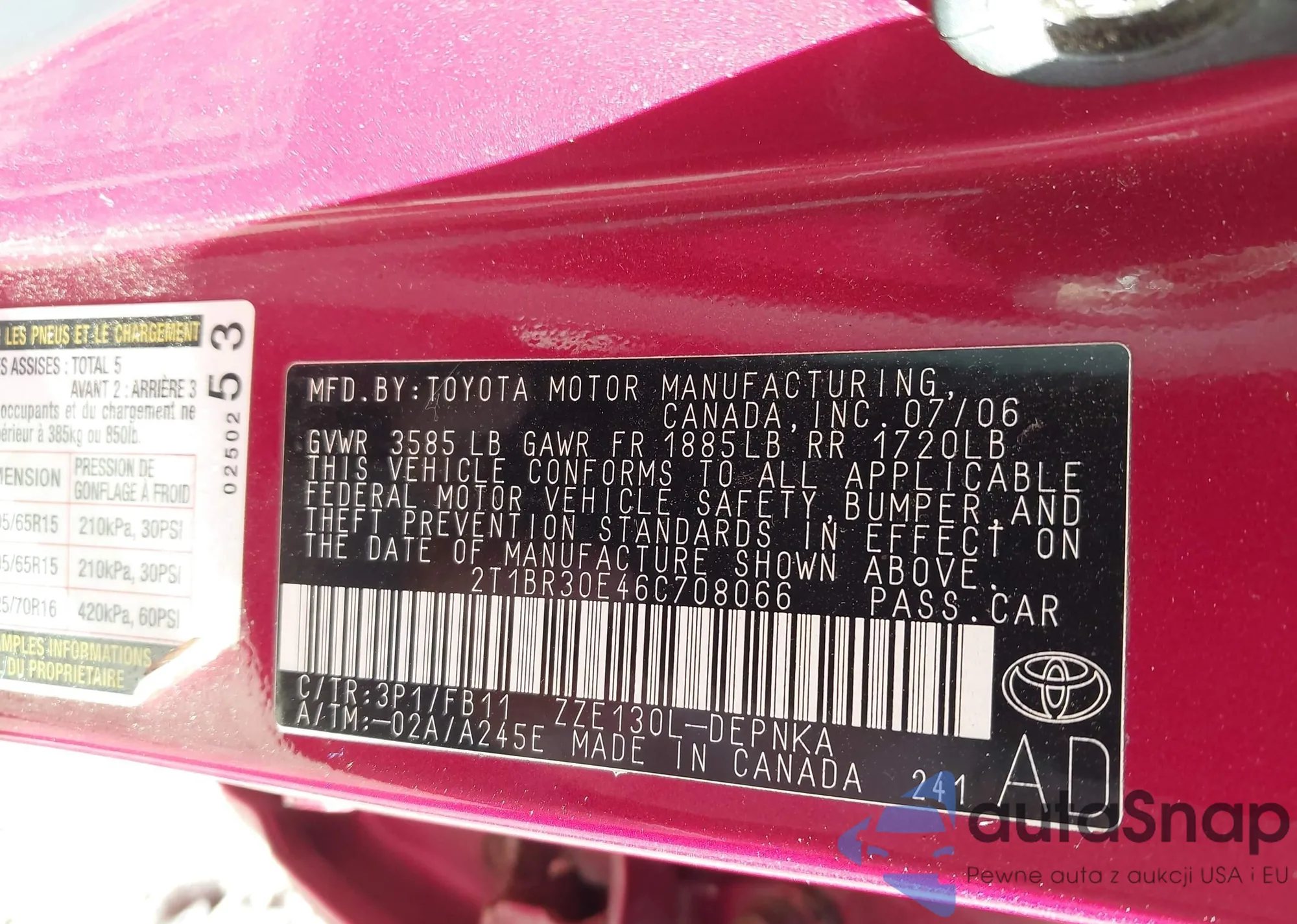 LOT: 43179047 VIN: 2T1BR30E46C708066