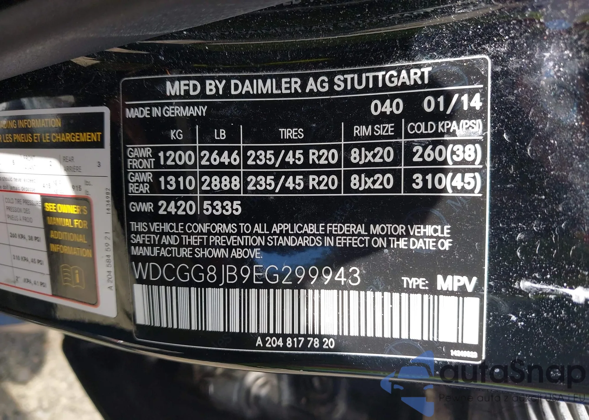 LOT: 42975743 VIN: WDCGG8JB9EG299943